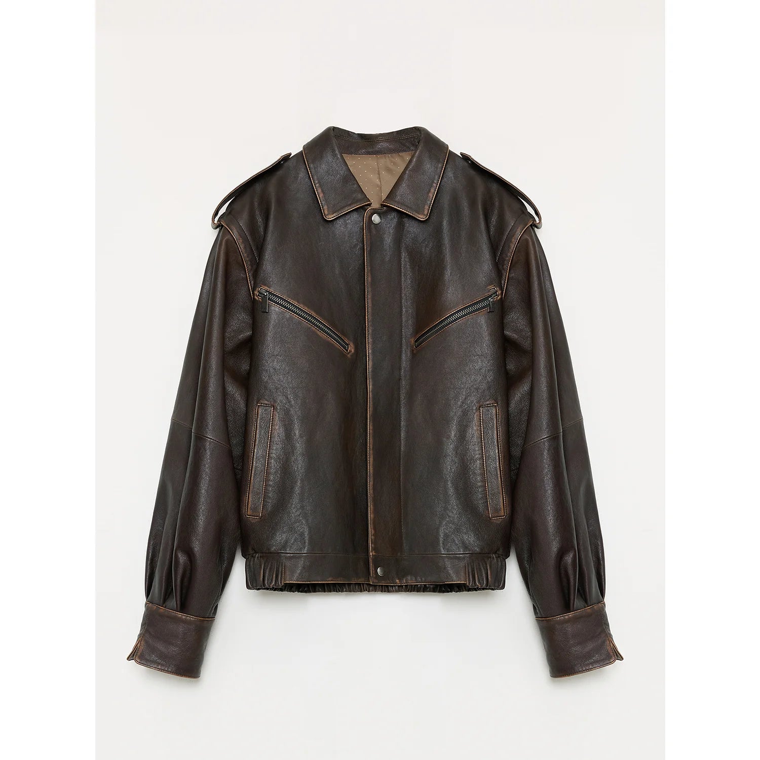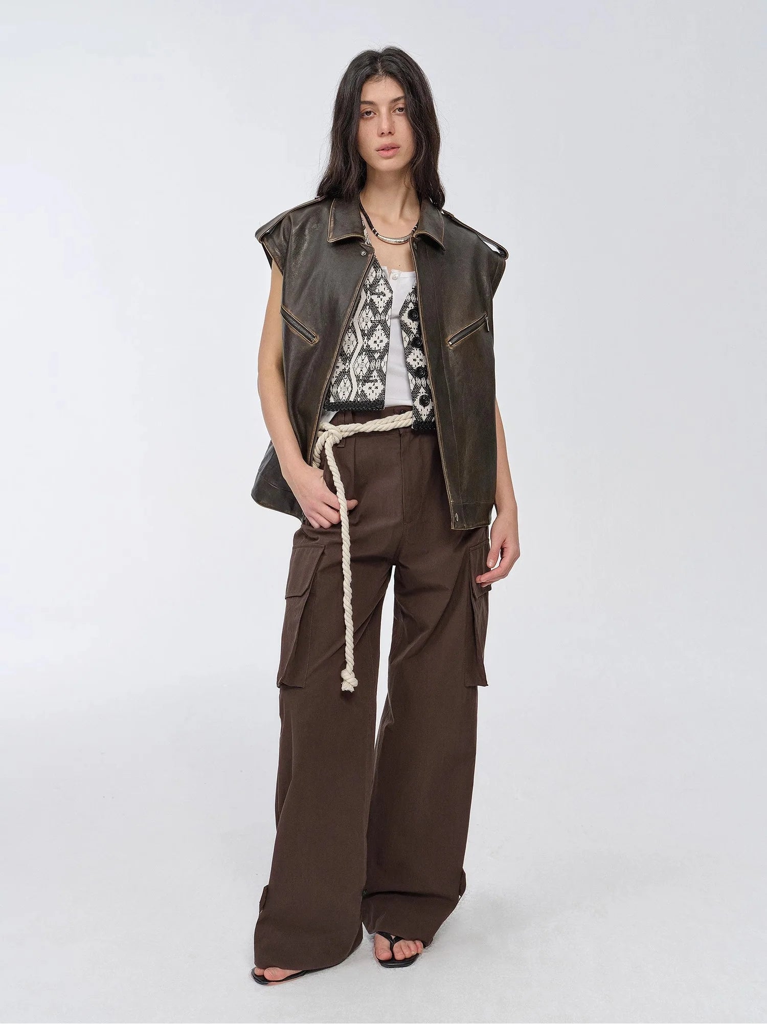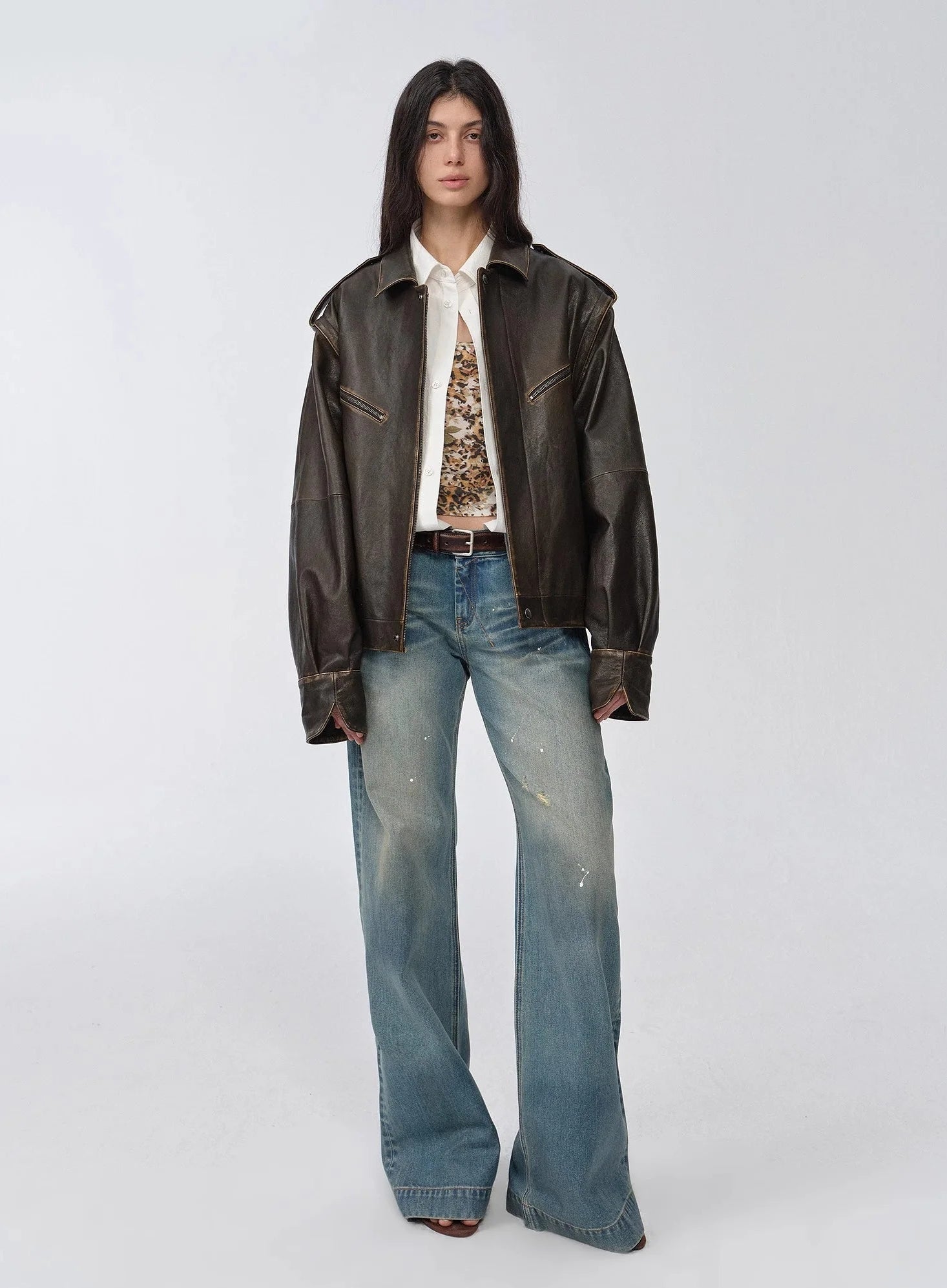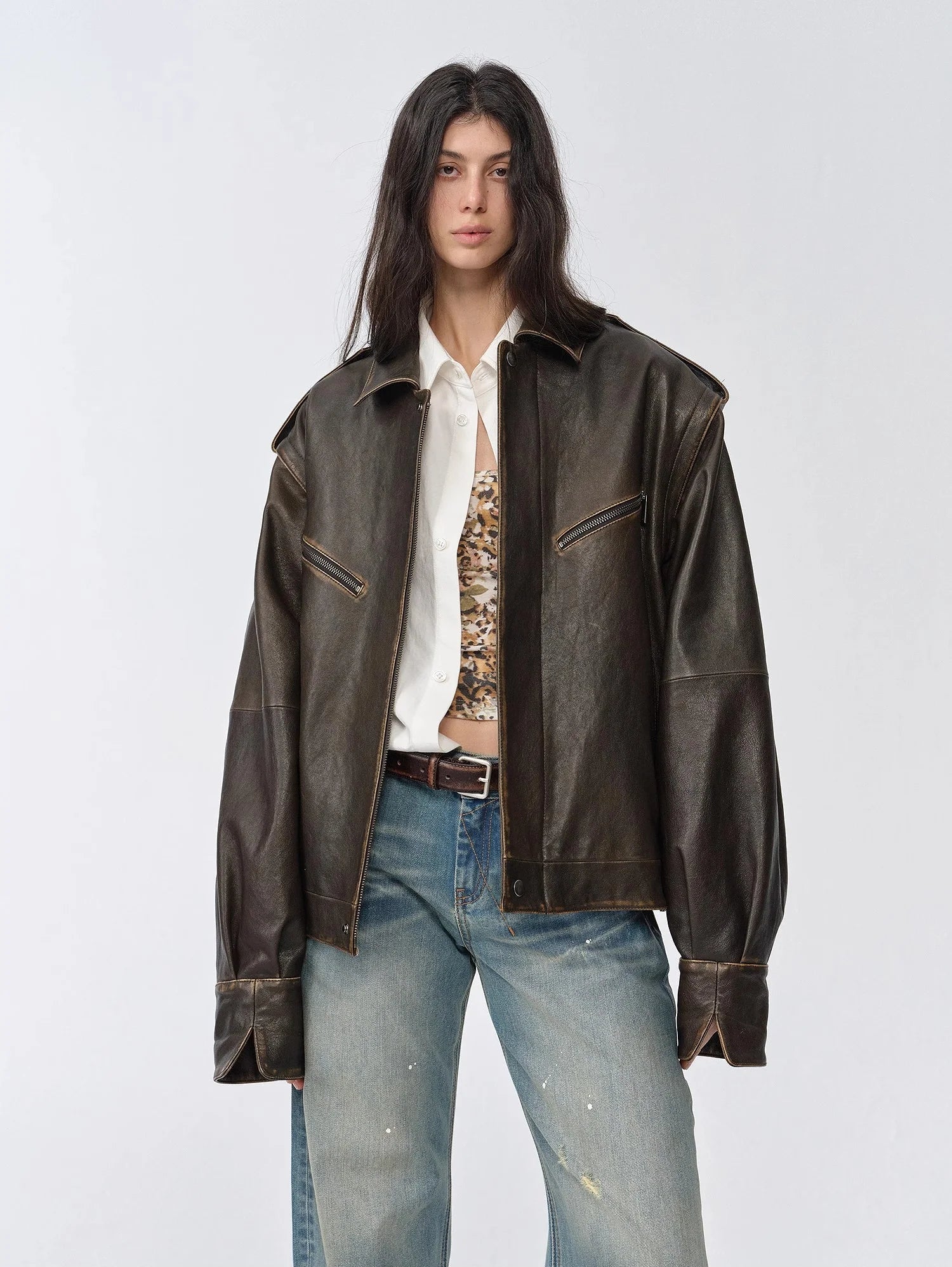 "Barn Feelings" Vintage Distressed Vegetable Tanned Sheepskin Sleeves Removable Two-Way Genuine Leather Jacket