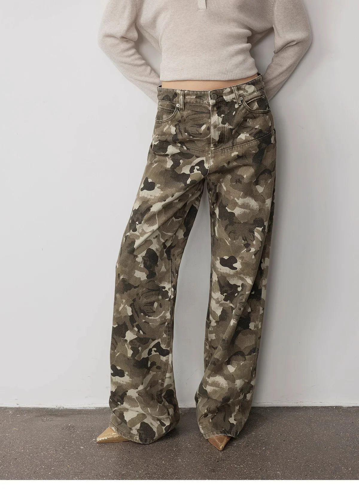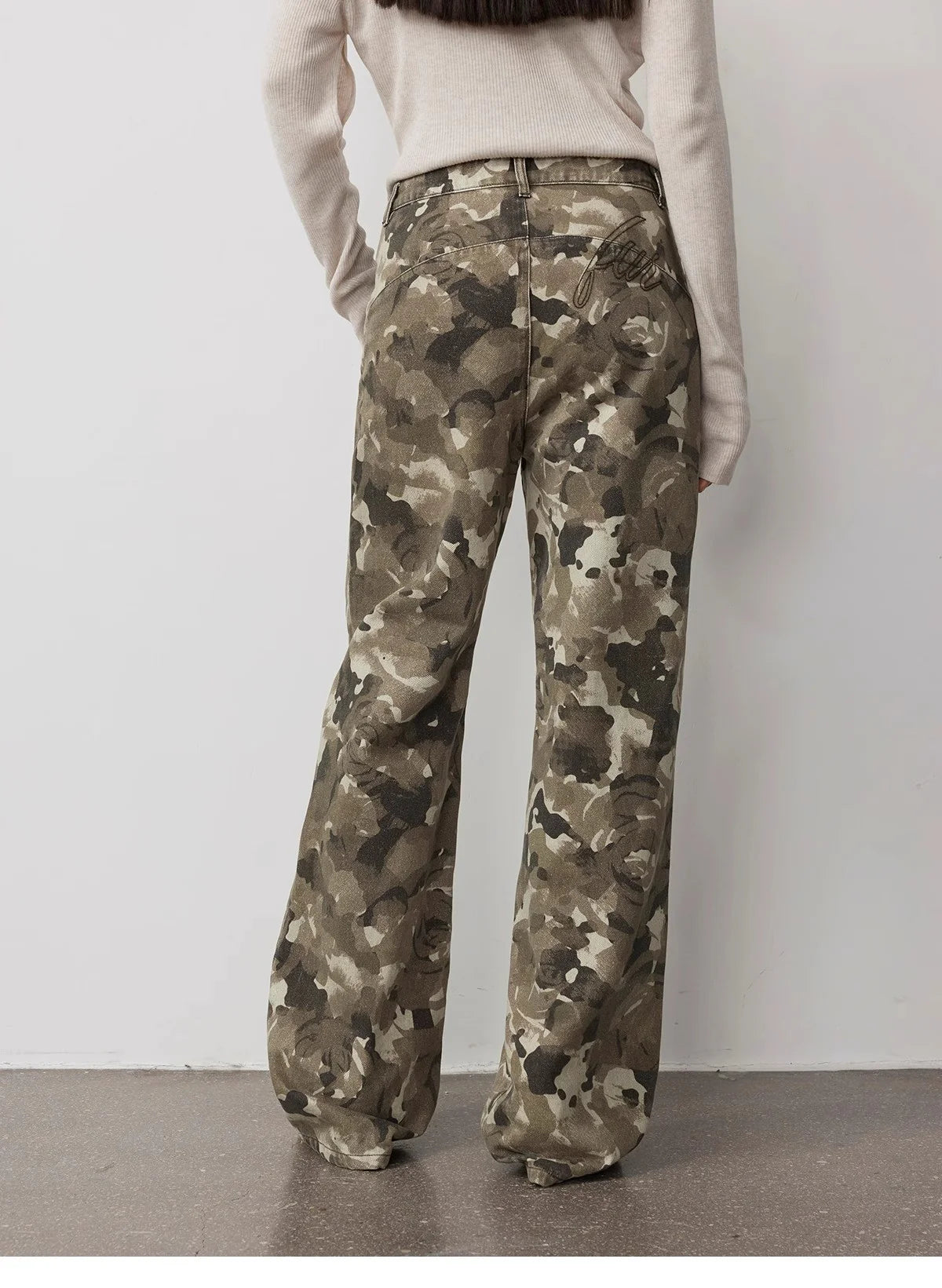 "Camouflage Charm " Cool, Trendy, Unique, and Personalized Original Camouflage Print Washed Loose Straight-Leg Denim Jeans