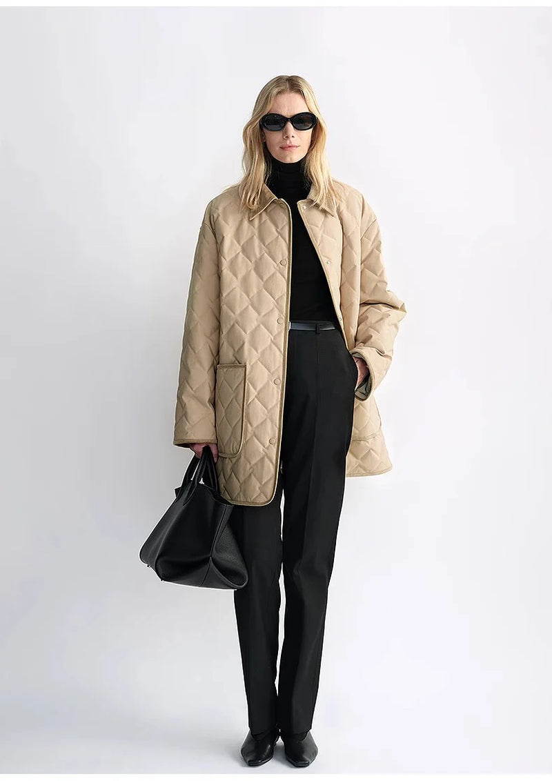 "Diamond Texture" Splicing Lapel 90 White Goose down Barn Jacket down Jacket Women
