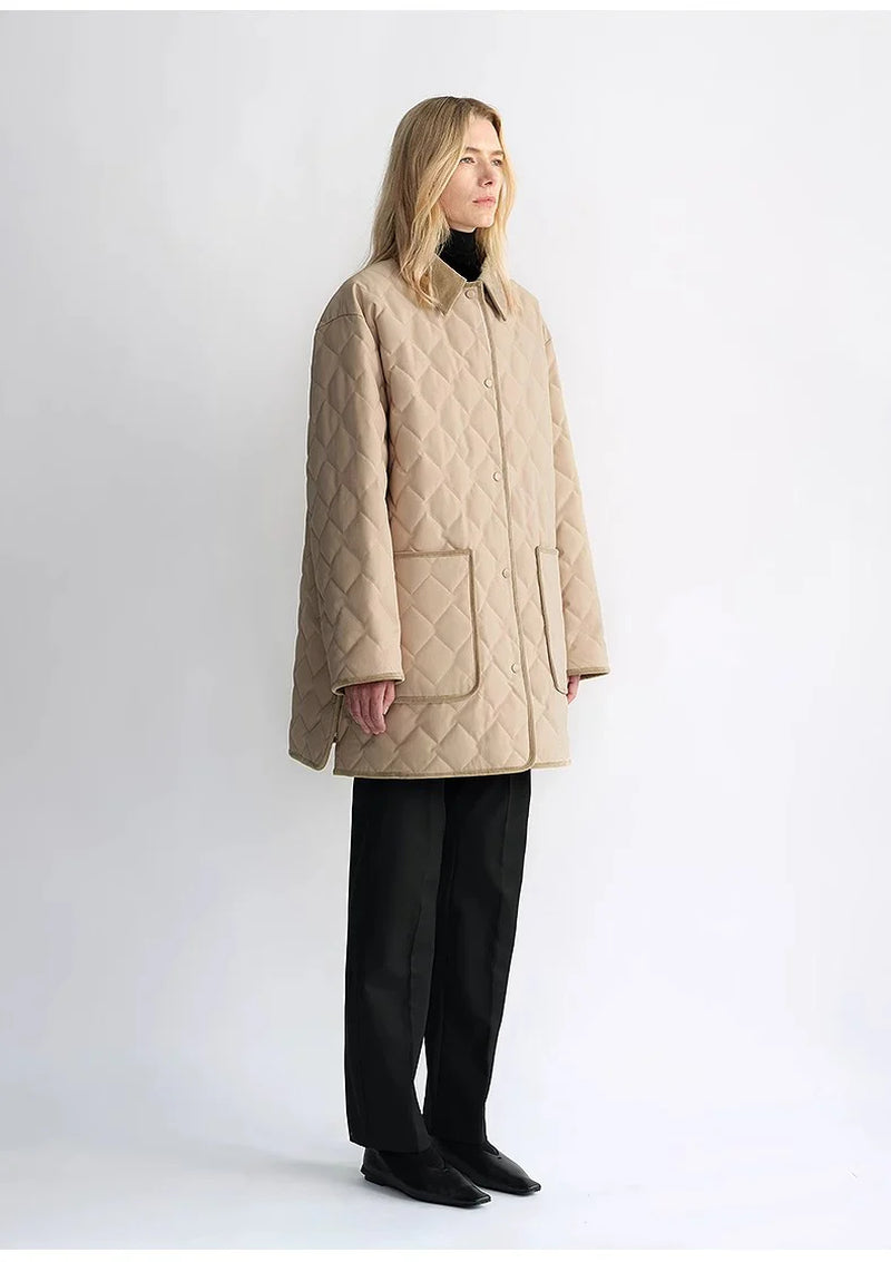 Textured wilting quilted fabric, spliced lapel goose down barn jacket, retro and practical