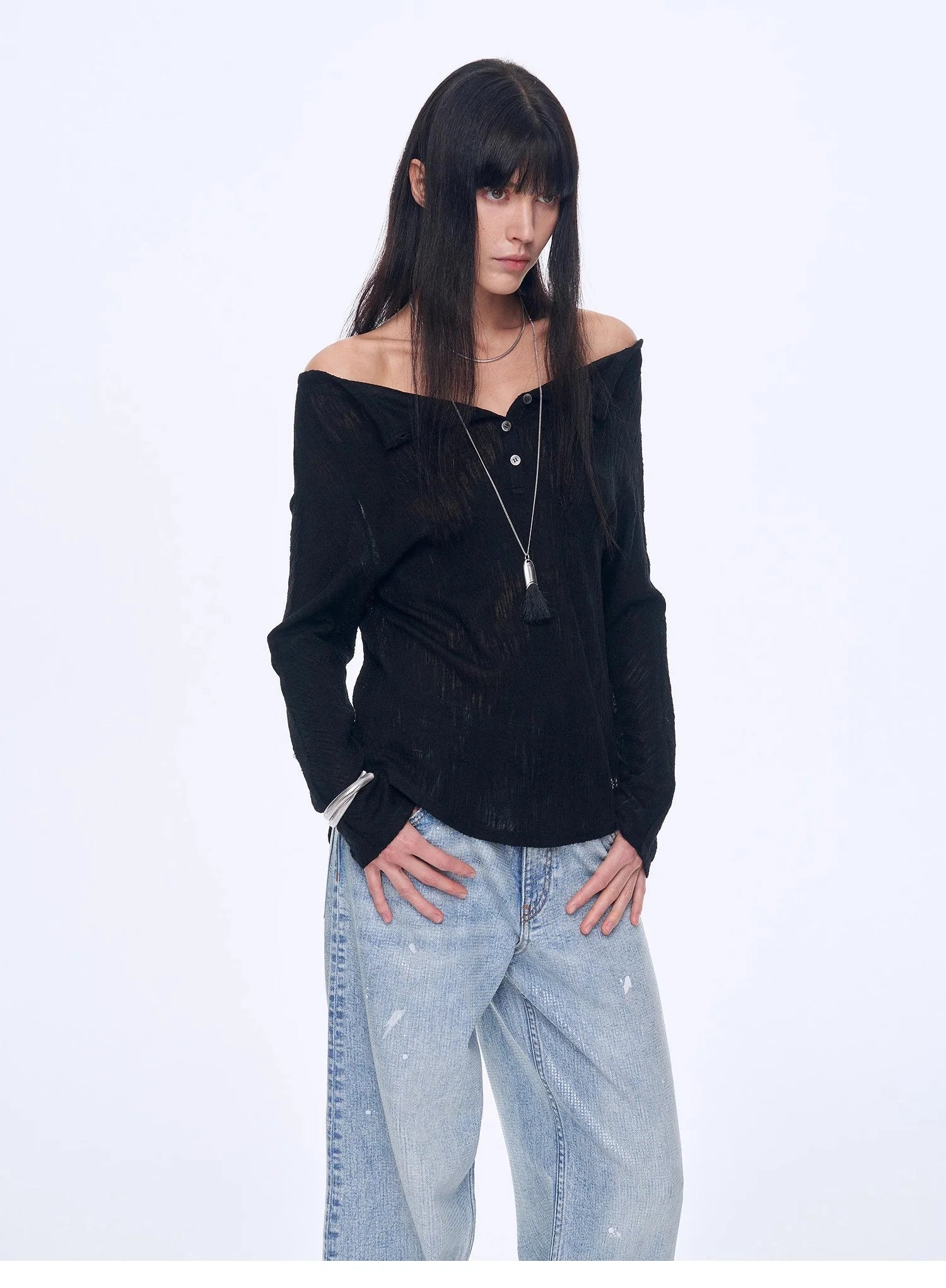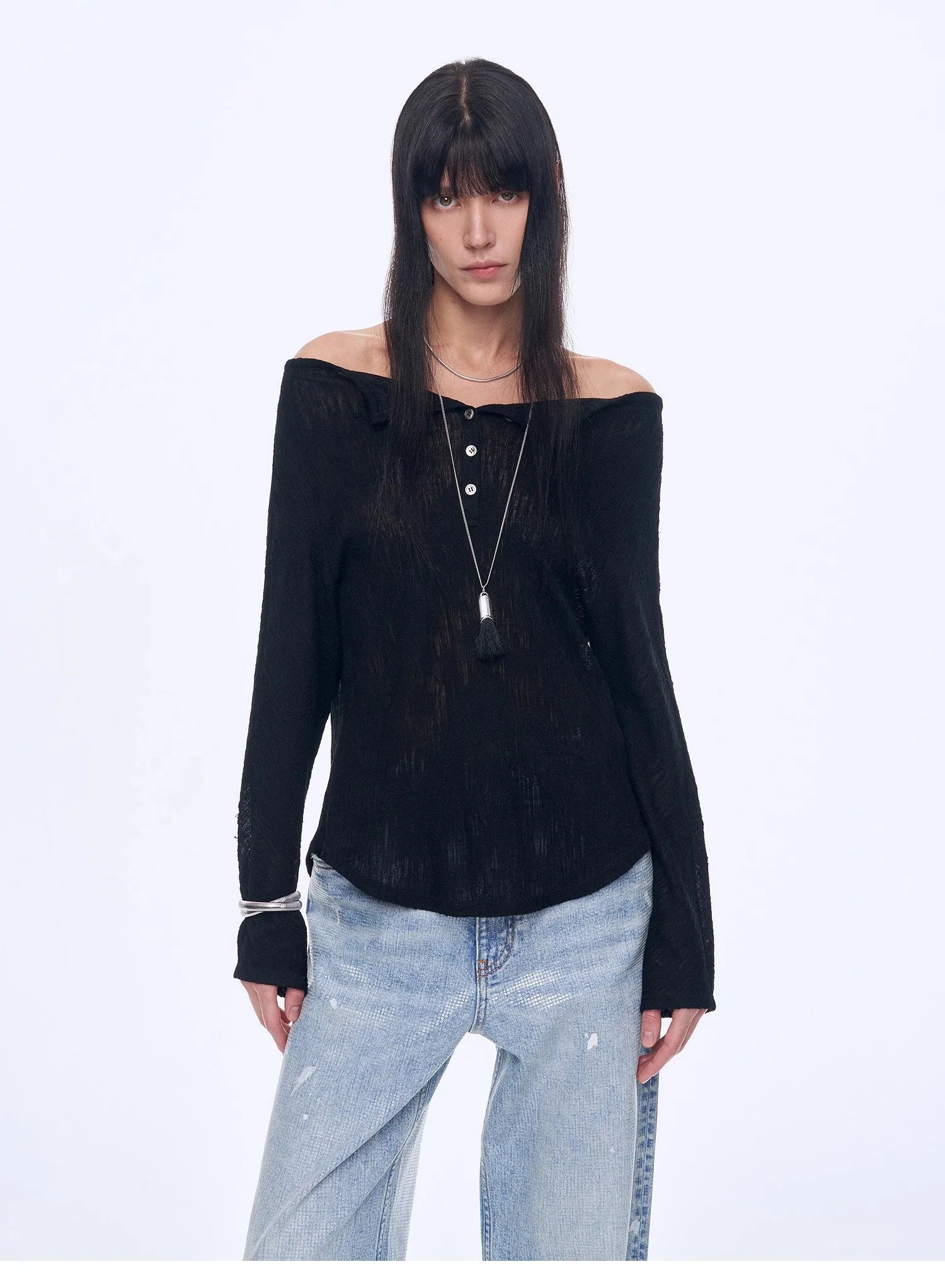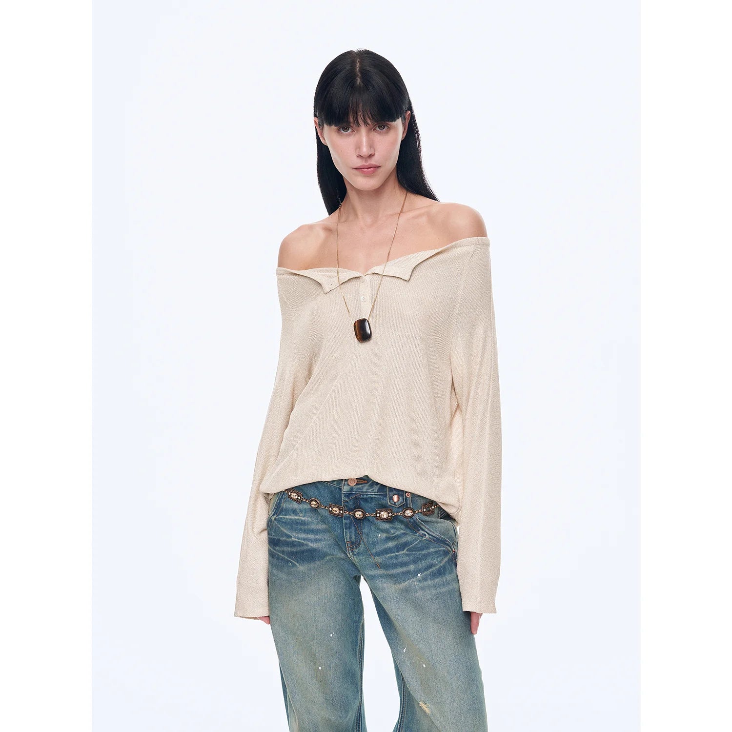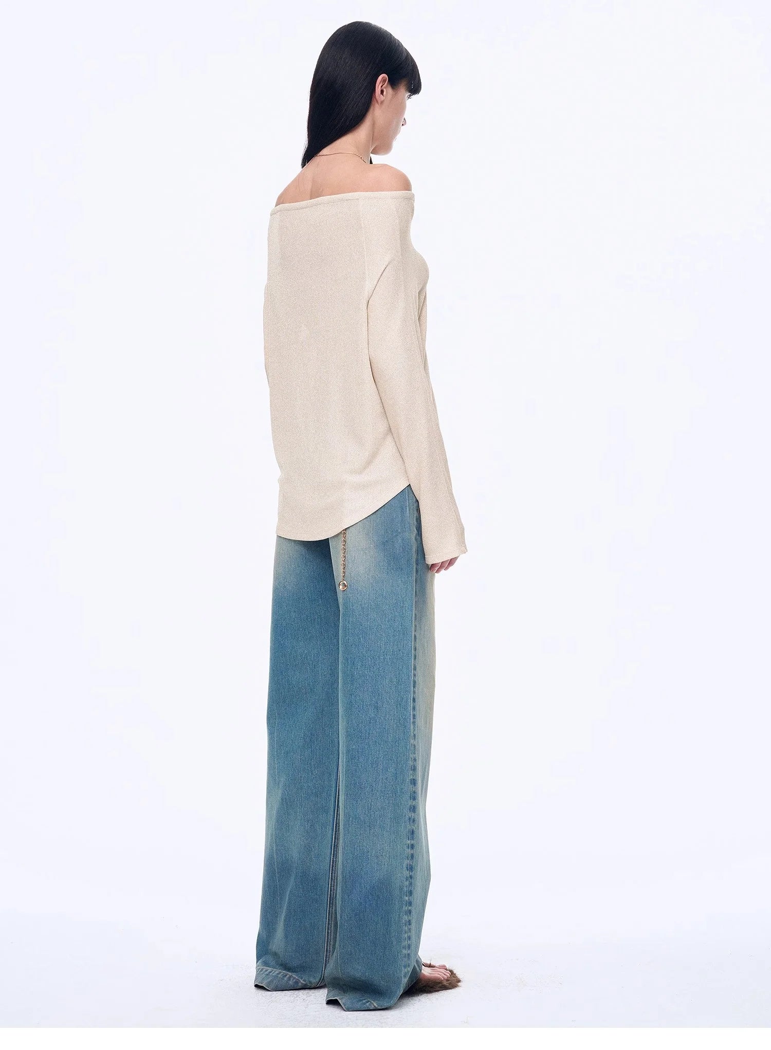 With a loose silhouette, it fits well on the body, hiding flaws and making you look slimmer. The curved hemline modifies the waist and abdomen area, concealing excess flesh for a slimmer look. The raglan sleeve design effectively reduces the bulkiness of the shoulders, making the side profile appear slimmer. The stylish off-the-shoulder neckline smoothly elongates the neck line, highlighting the length and elegance of the neck.