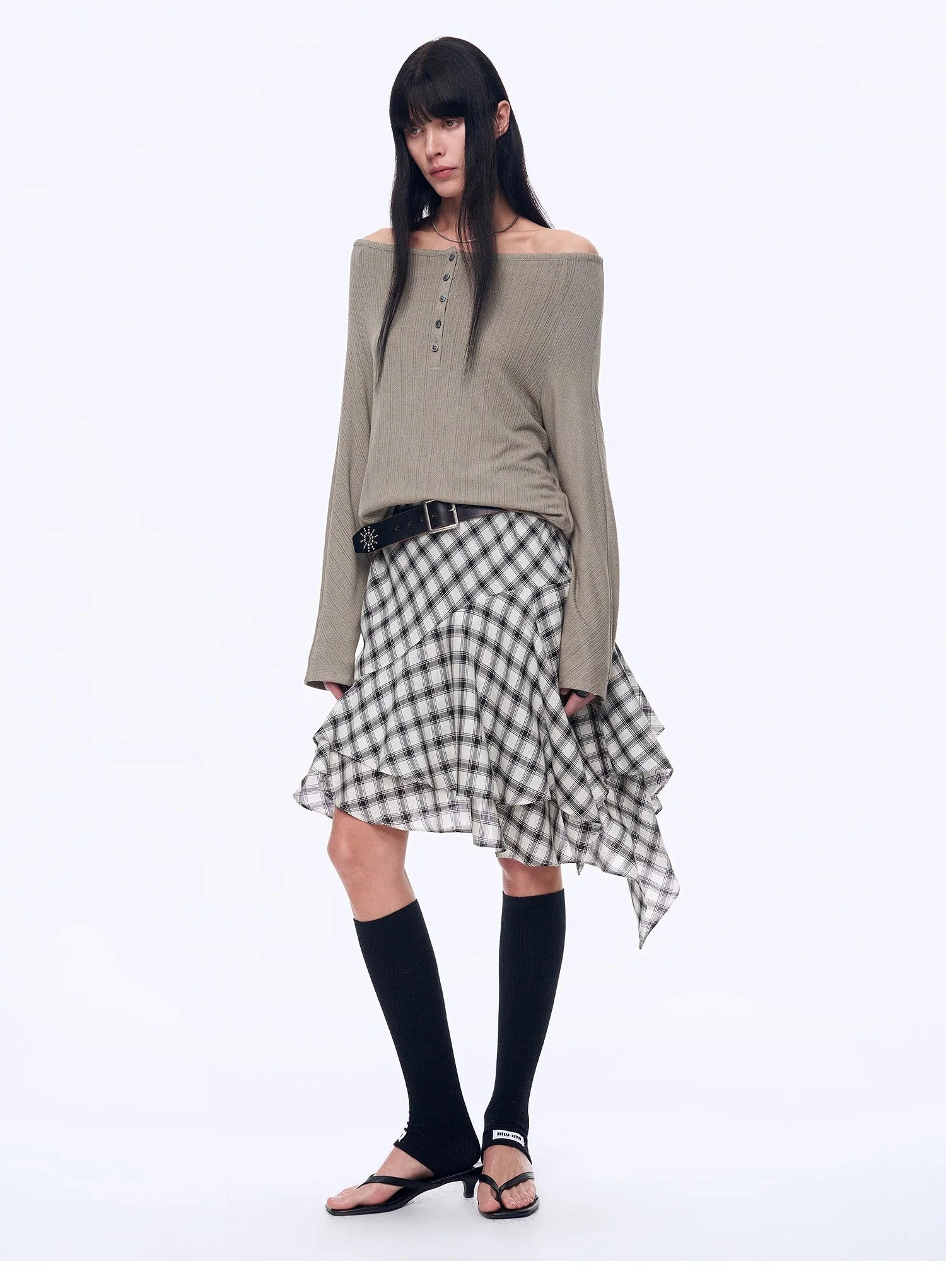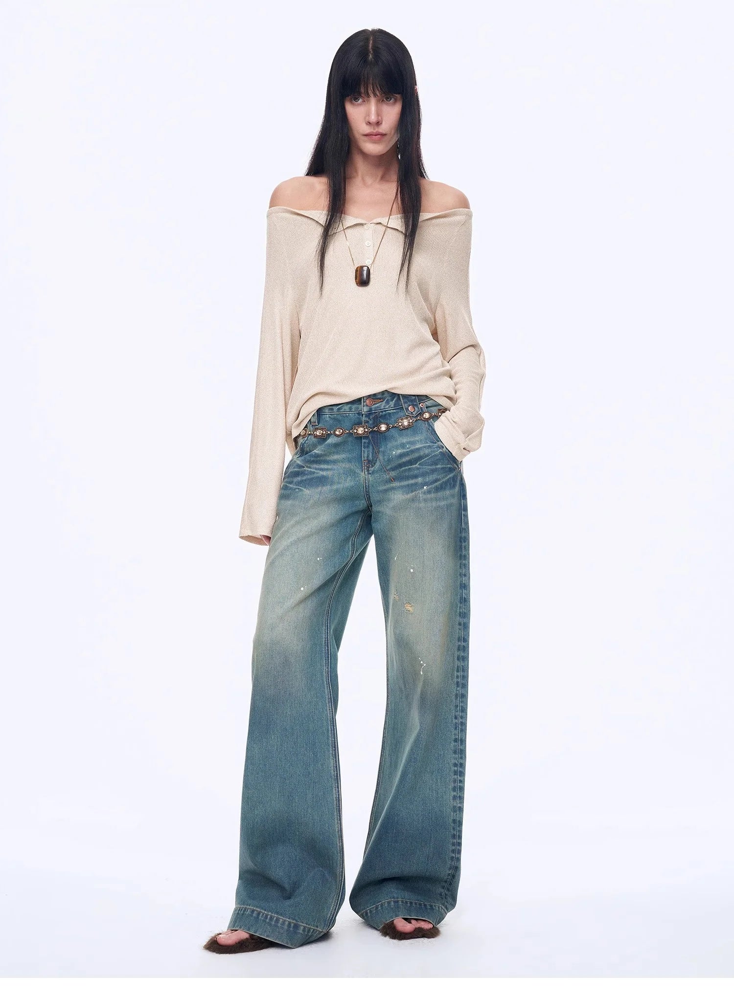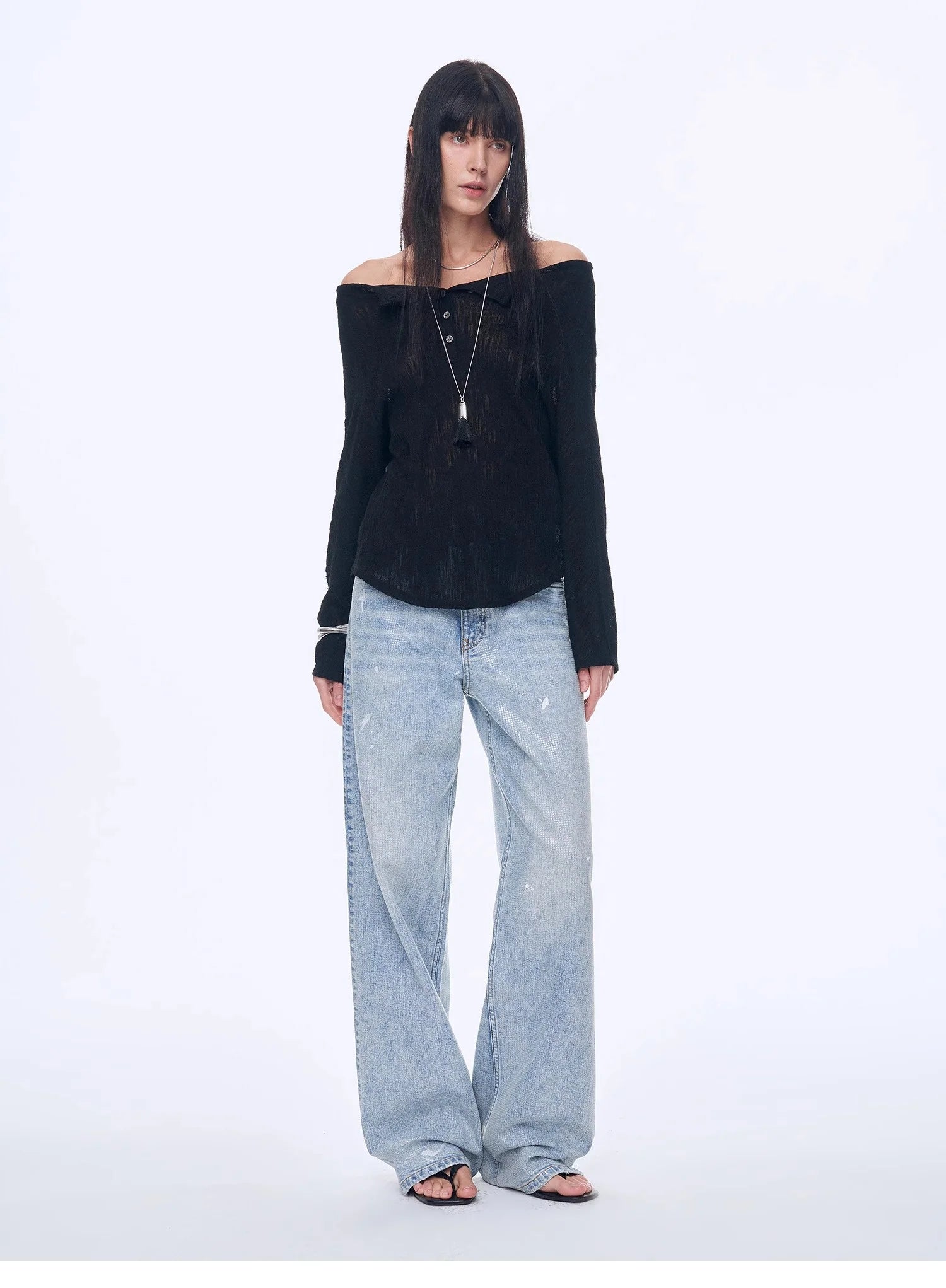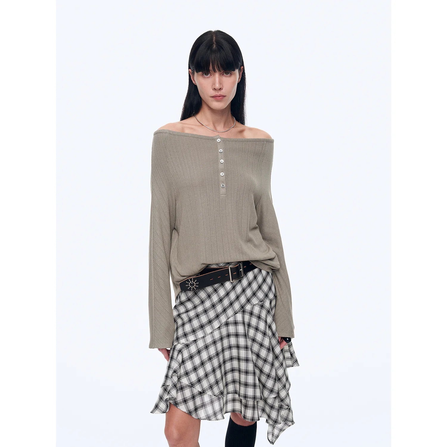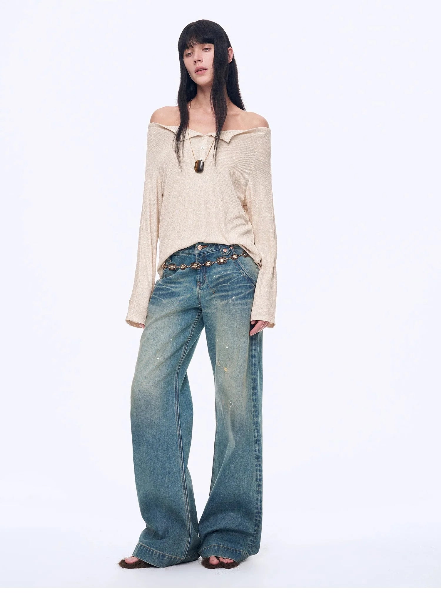 With a loose silhouette, it fits well on the body, hiding flaws and making you look slimmer. The curved hemline modifies the waist and abdomen area, concealing excess flesh for a slimmer look. The raglan sleeve design effectively reduces the bulkiness of the shoulders, making the side profile appear slimmer. The stylish off-the-shoulder neckline smoothly elongates the neck line, highlighting the length and elegance of the neck.