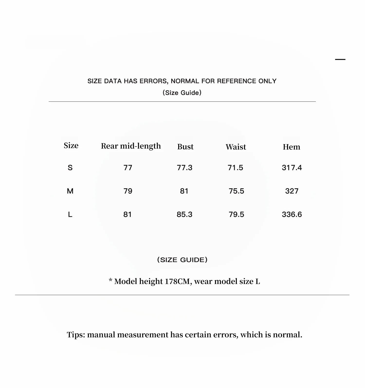 Elegant and smart V-neck suspender with irregular A-hem mid-length skirt creates a concave and convex S-curve, making the body elegant and slender.