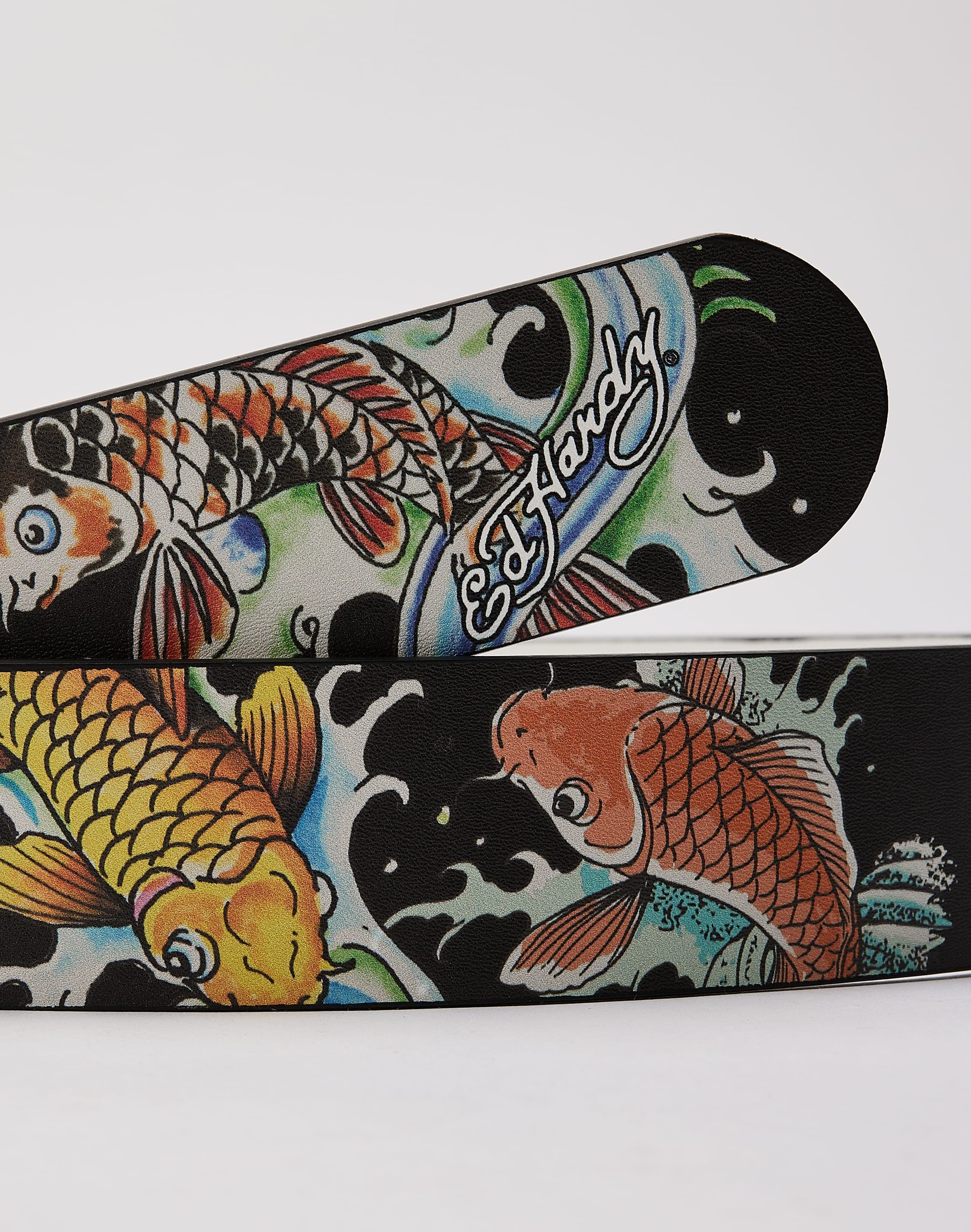 Elevate your urban style with the Men’s Ed Hardy Koi Fish Belt, a distinctive accessory that combines artistry and functionality. Featuring vivid tattoo-inspired graphics that capture the dynamic spirit of Ed Hardy’s design legacy, this belt is crafted to stand out. The polished metal buckle enhances its sophisticated appeal while providing a secure fit. Perfect for adding a touch of refined individuality to casual or streetwear looks, this belt seamlessly blends bold visual impact with timeless quality. An ideal statement piece for those who appreciate detailed craftsmanship and expressive fashion.