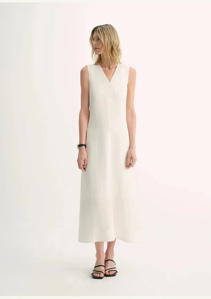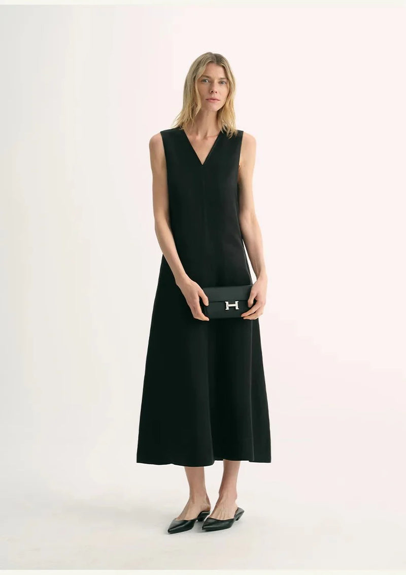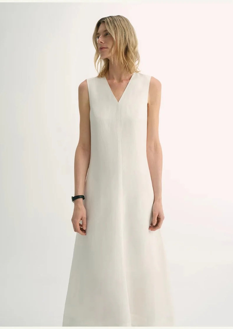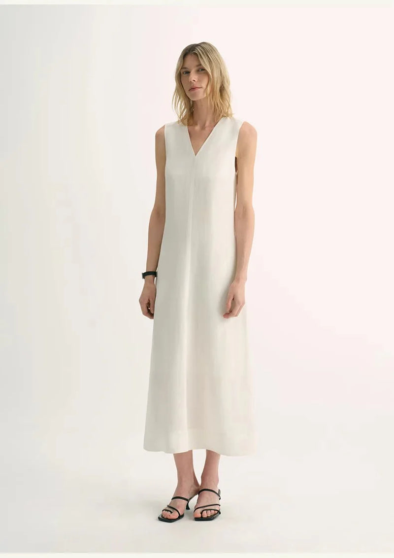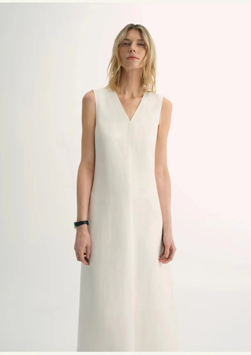 Light luxury cuprammonium Tencel linen V-neck sleeveless A-line dress The combination of high-quality cuprammonium + Tencel + linen is light and breathable, with a unique luster and texture. The neat V-neck cut, the elegant yet powerful A-line shape, and the details are all ingenious. The low-key and advanced texture, and the unique and ingenious design, easily show the confident aura of women.
