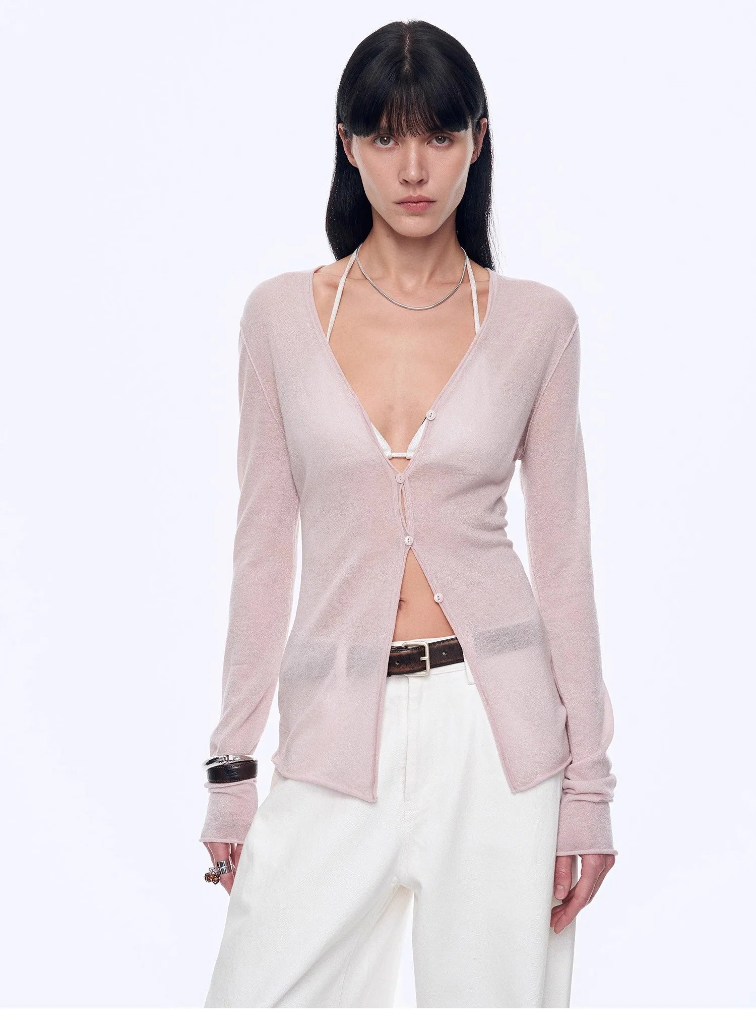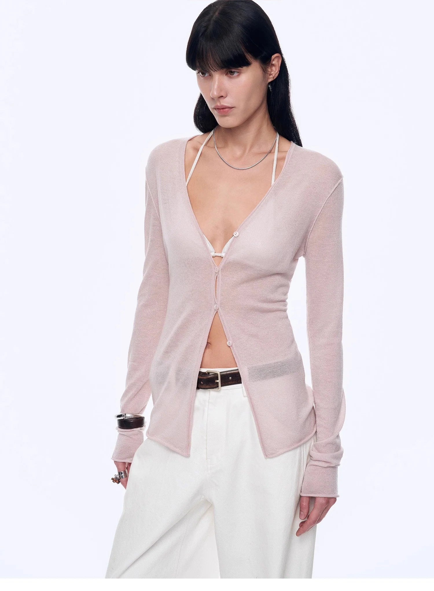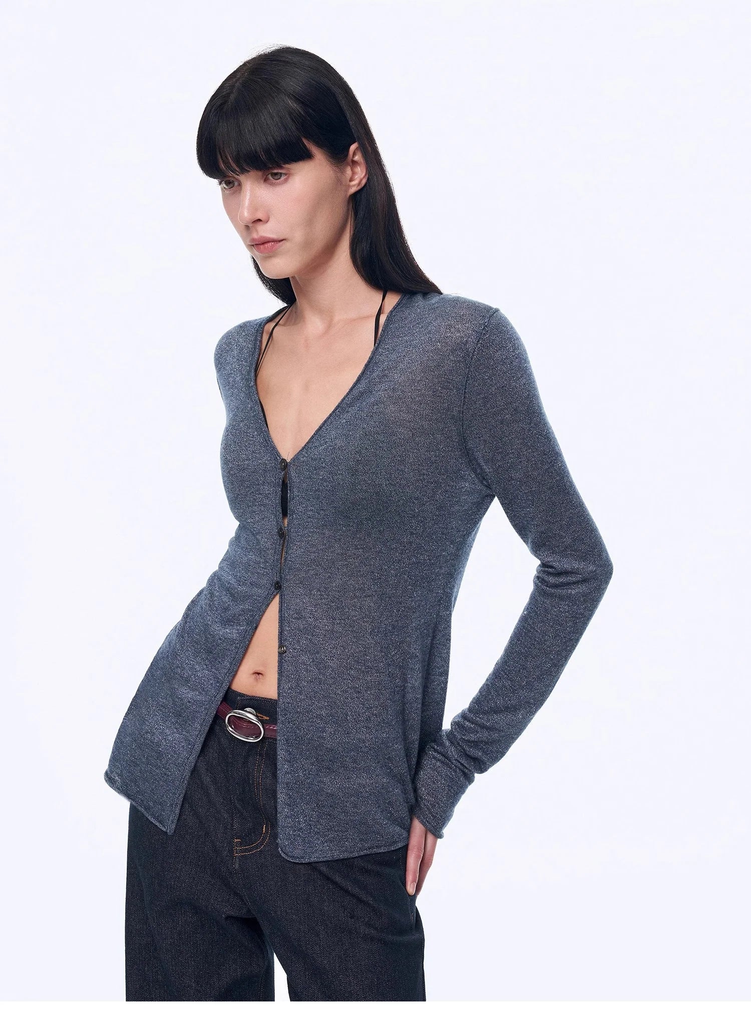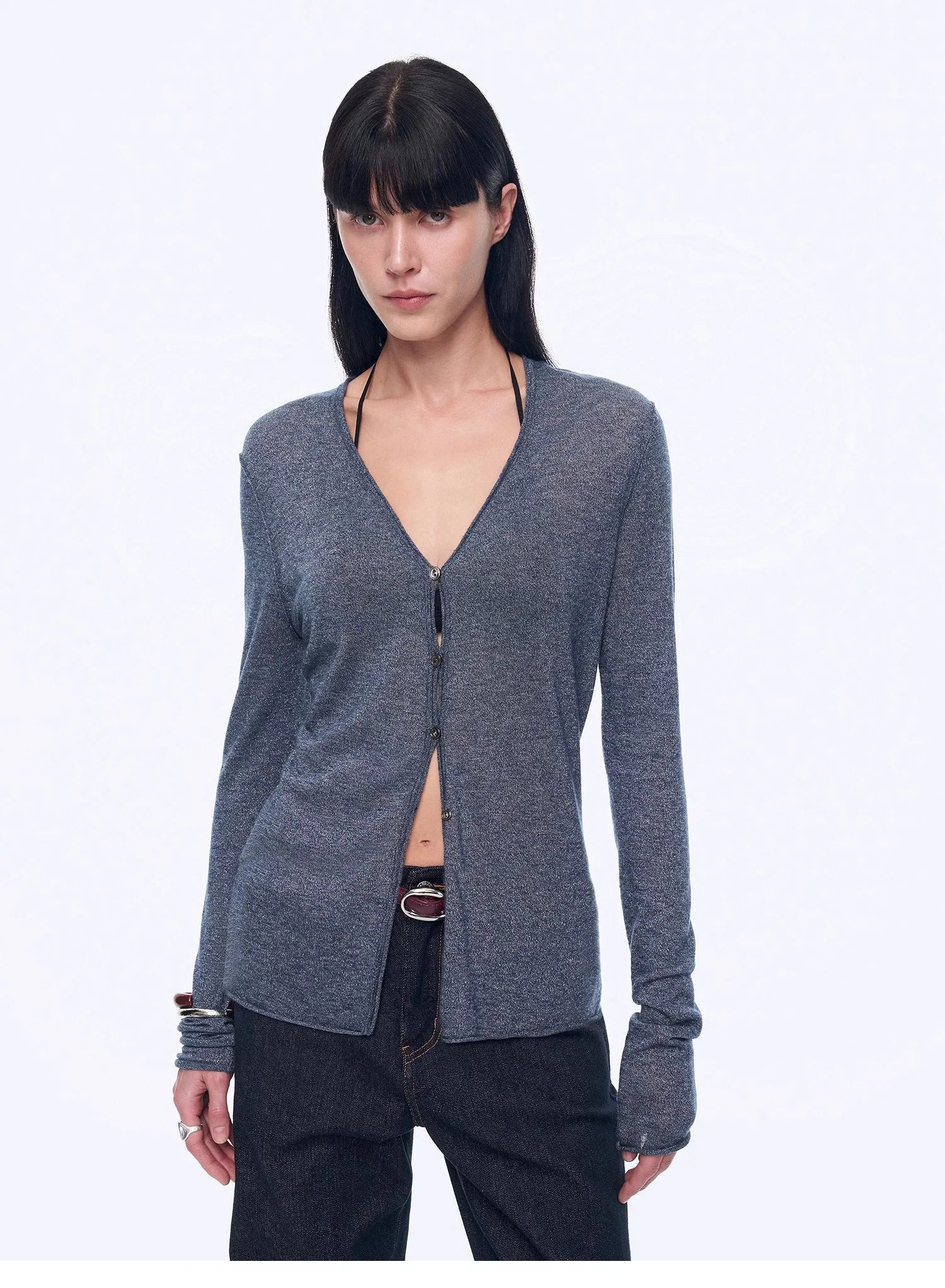 "Long Island Vacation" Wool Blend V-Neck Straight Shoulder Knitted Cardigan Spring