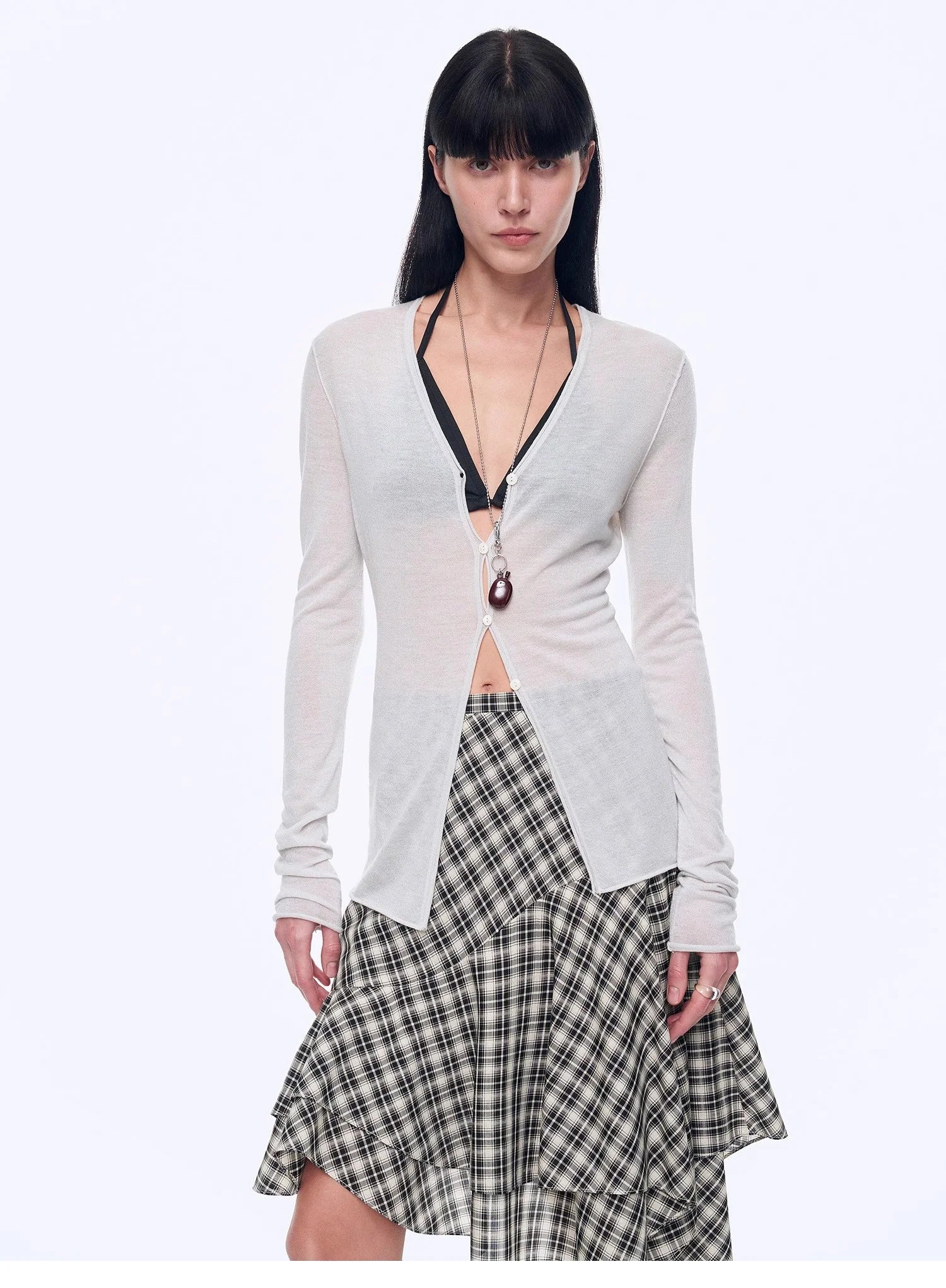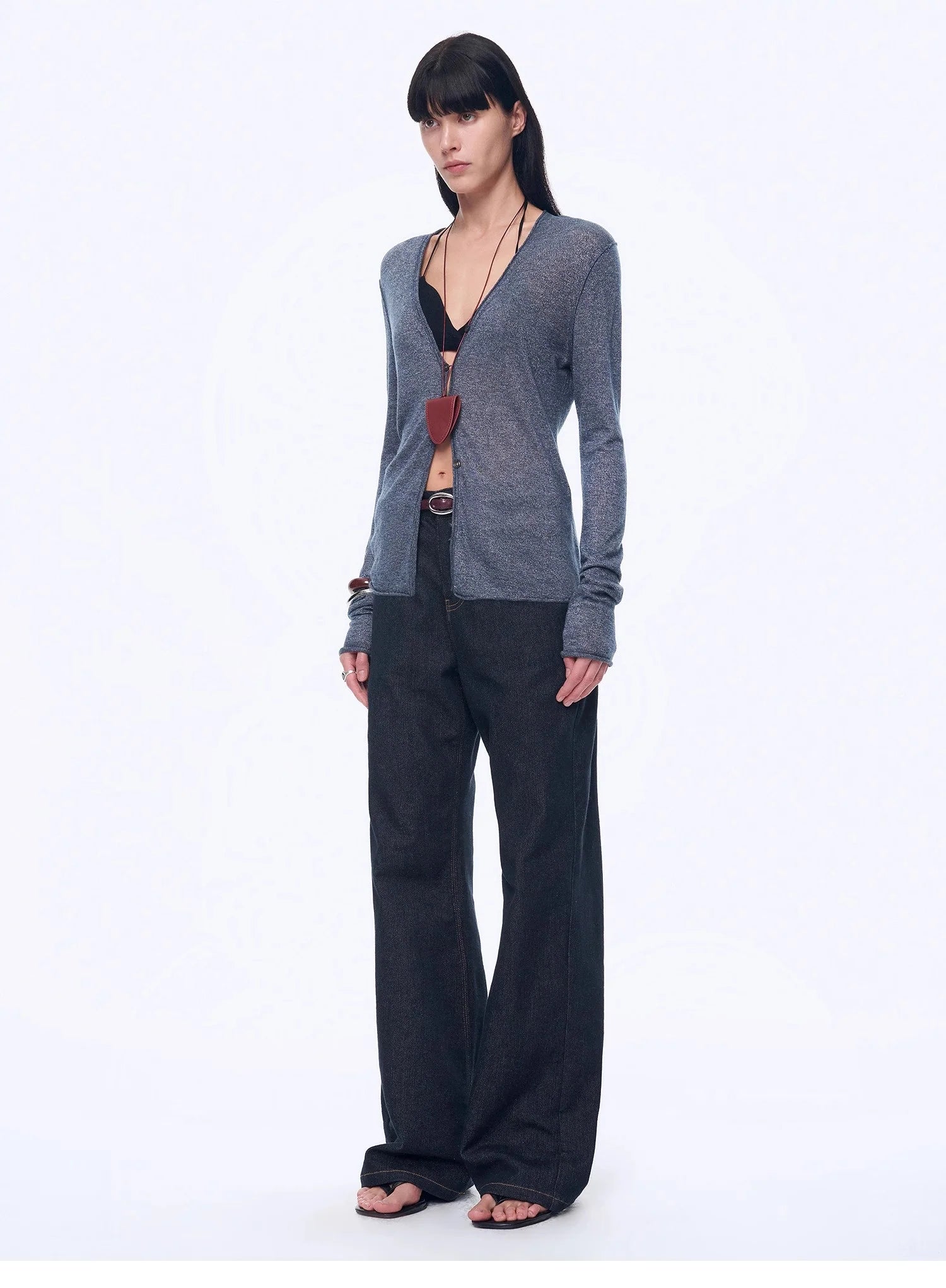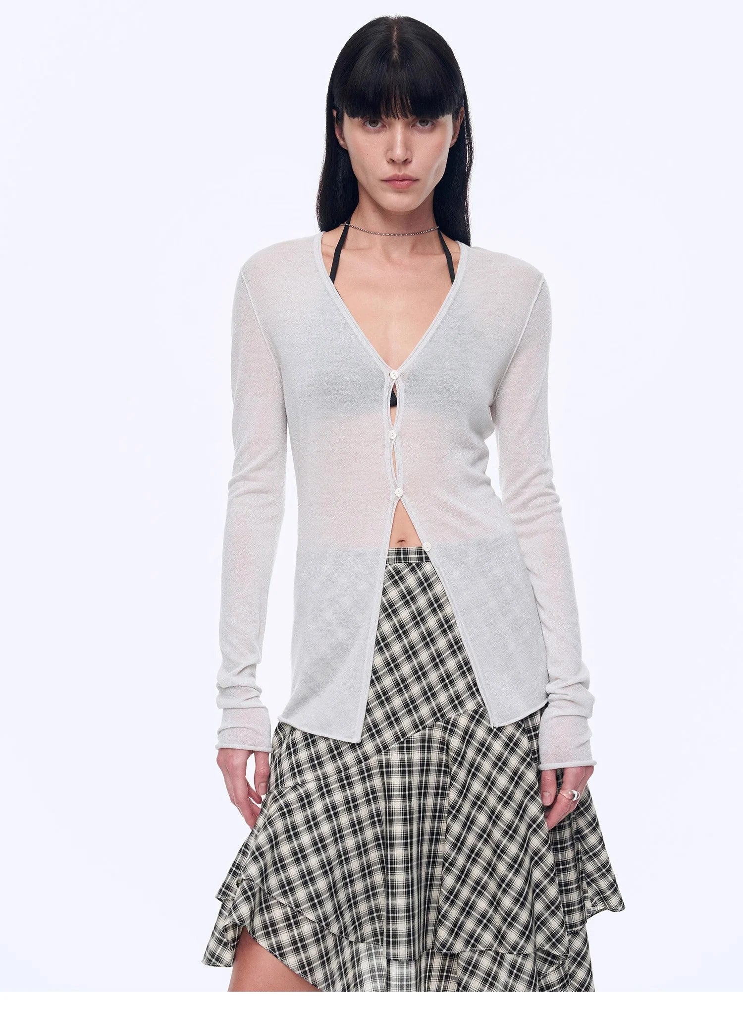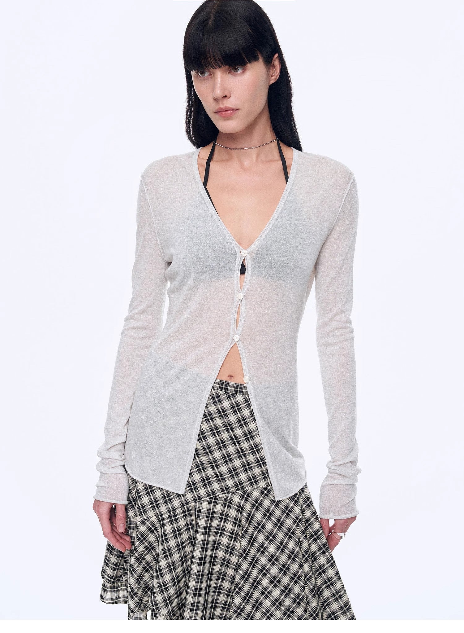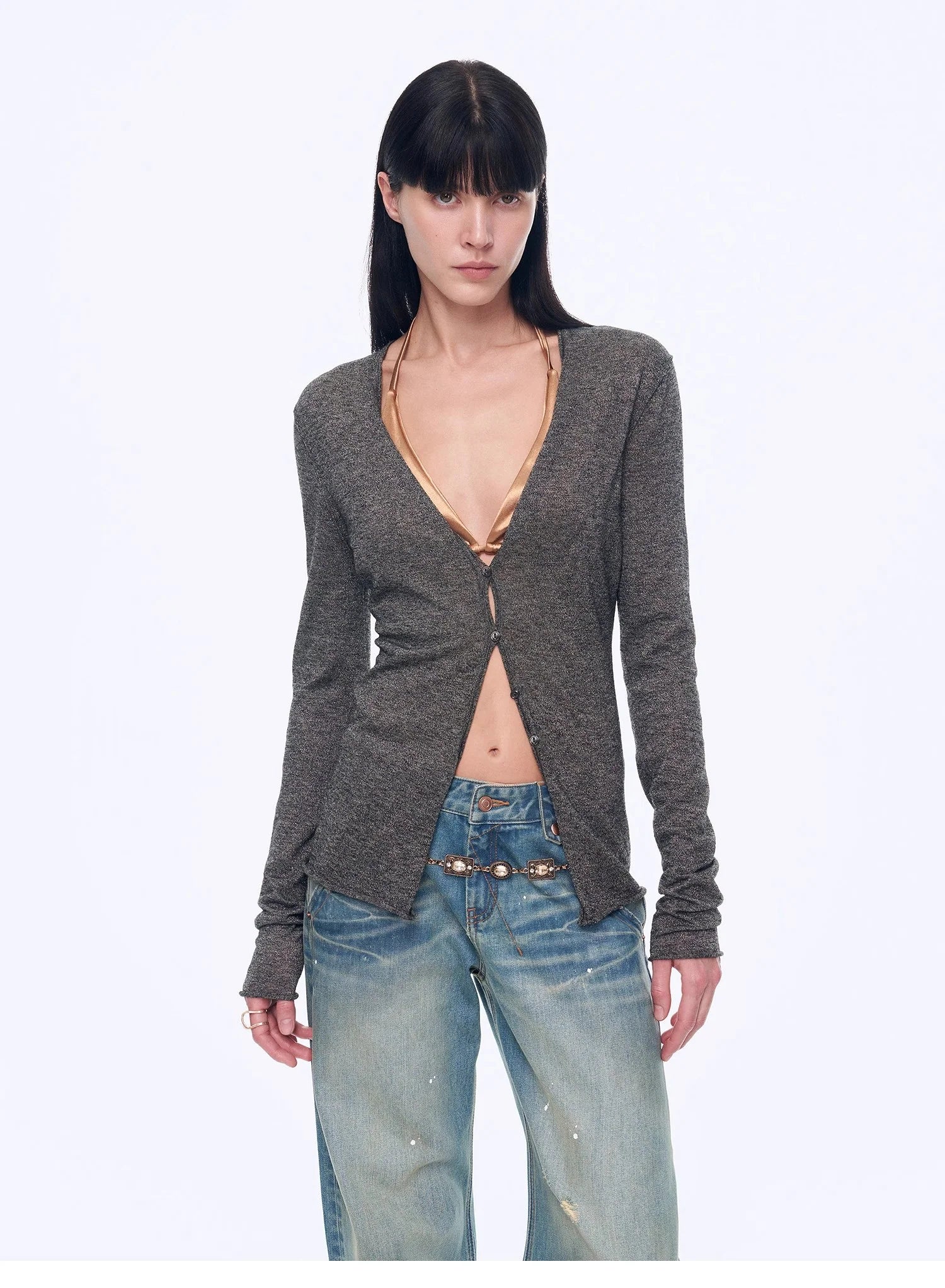 "Long Island Vacation" Wool Blend V-Neck Straight Shoulder Knitted Cardigan Spring