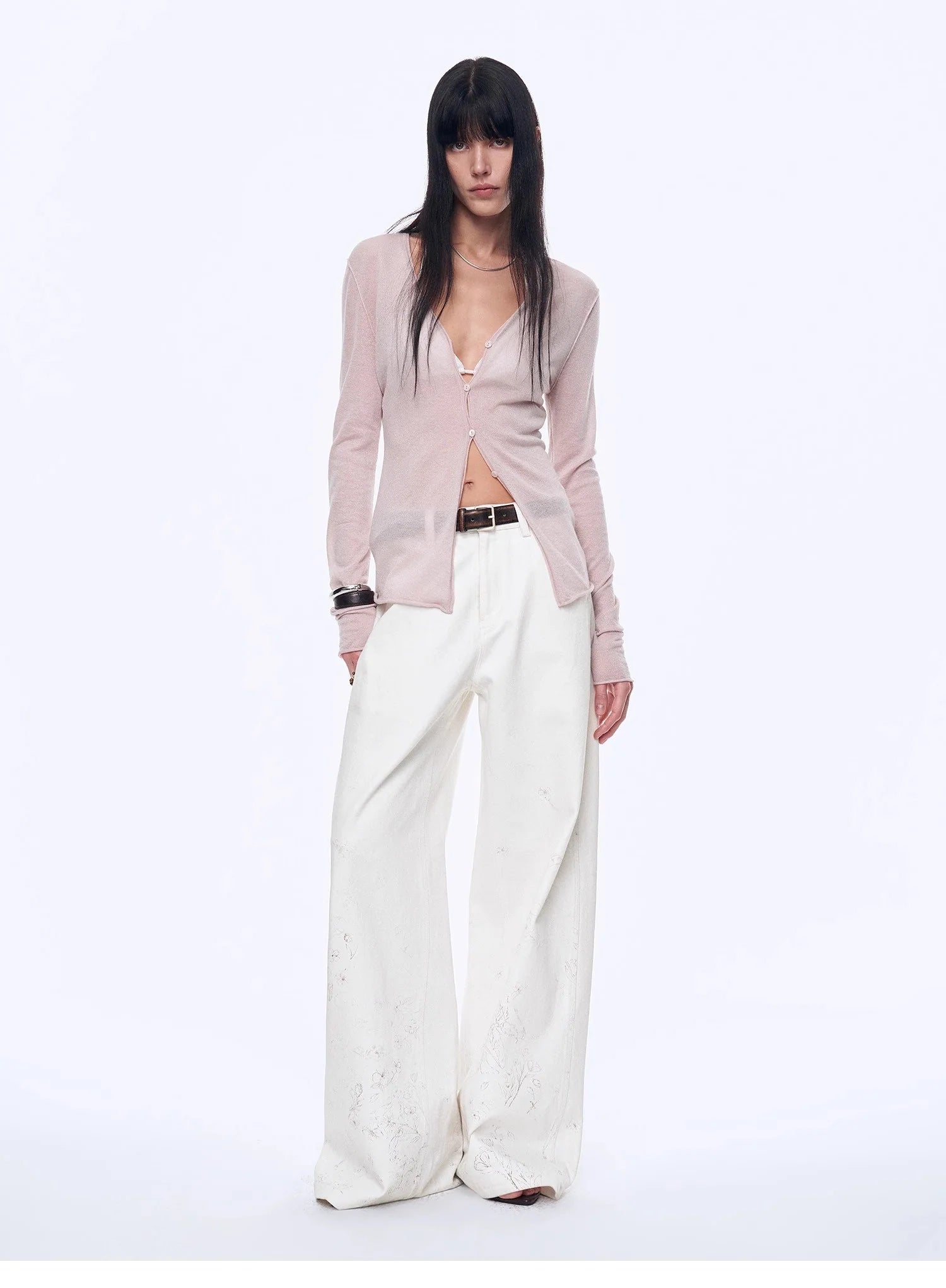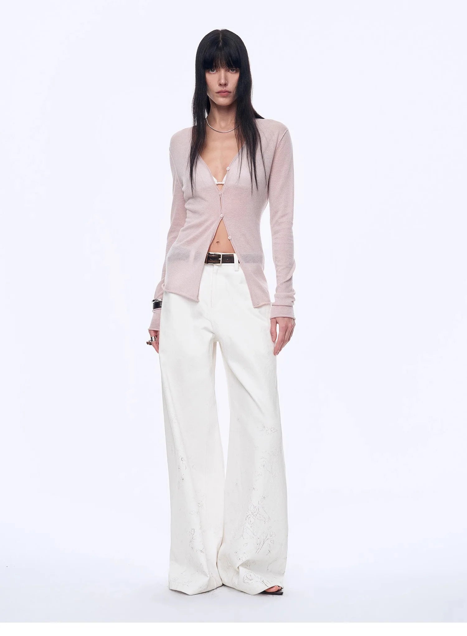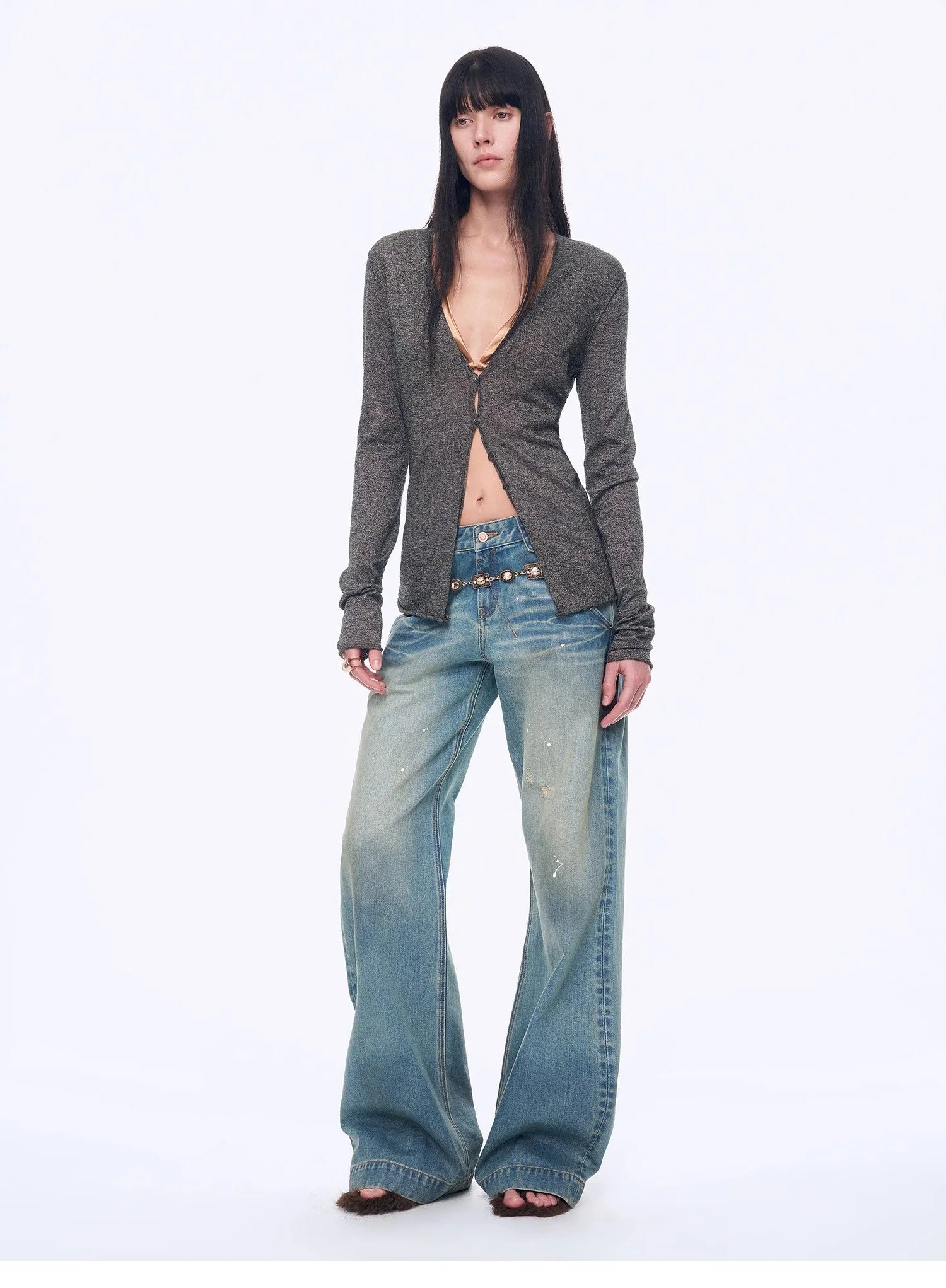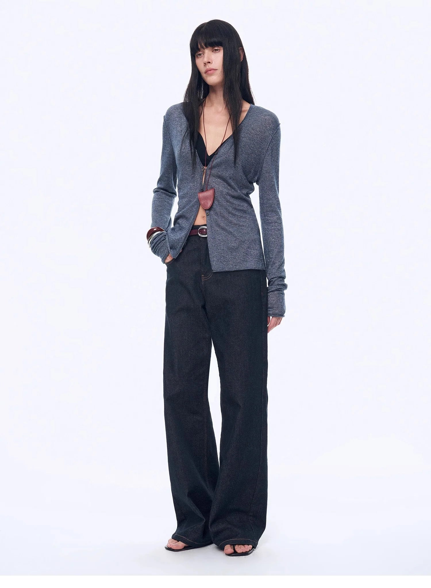 "Long Island Vacation" Wool Blend V-Neck Straight Shoulder Knitted Cardigan Spring