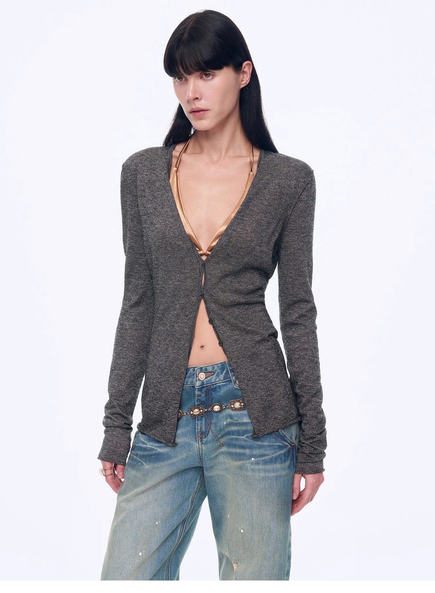 Slightly waisted V-neck Exquisite long V-neck, lengthening the neck line, combined with the shoulder sleeve design, highlighting the neck contour, and the temperament is upright. The waisted and slim version outlines the beauty of the curves, exquisite and slim, fashionable when worn alone or layered.