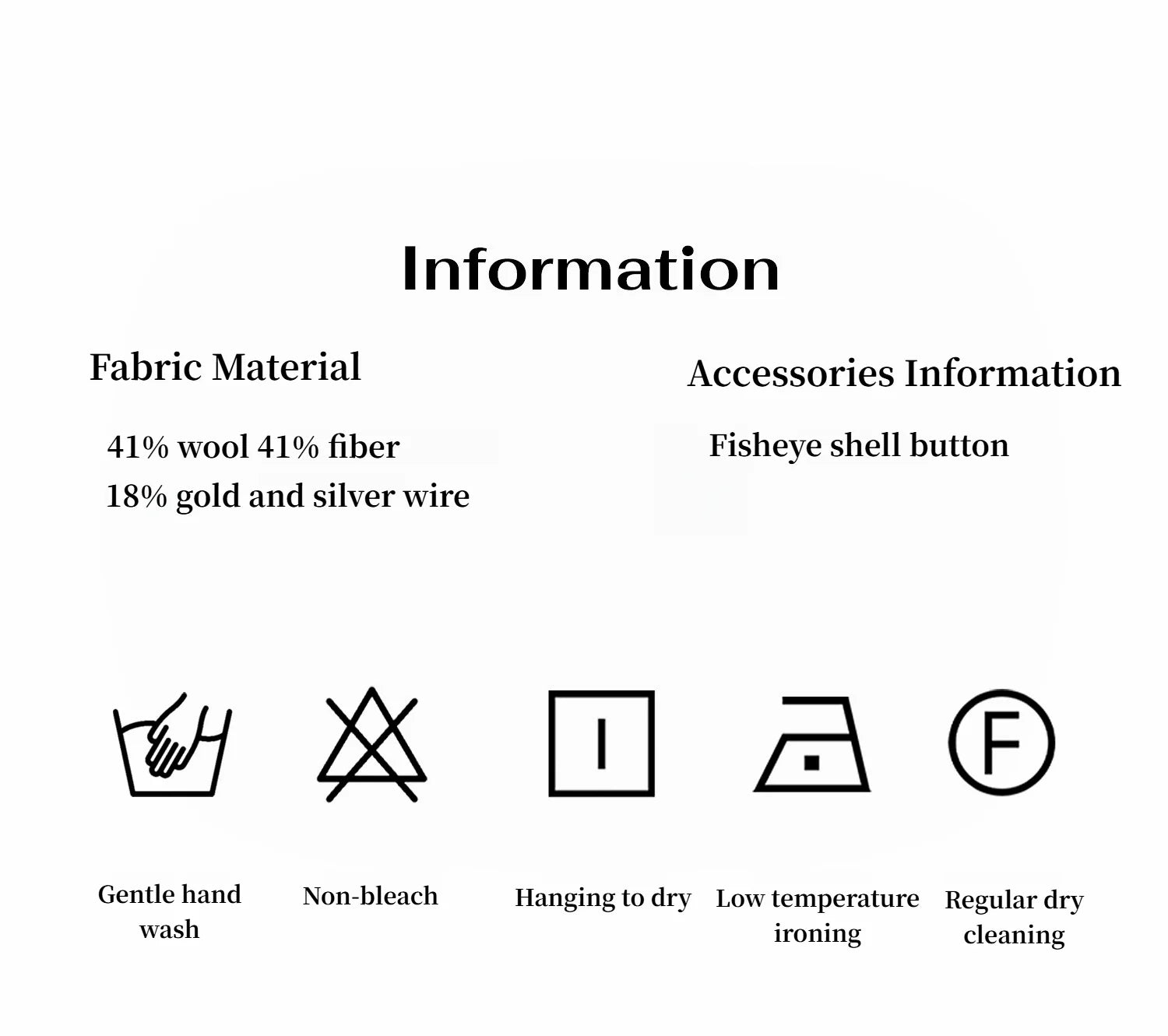 High-end gold and silver yarn water-soluble wool blended products are blended with ultra-fine wool and water-soluble fibers. During production, the water-soluble fibers enhance the strength of the yarn and are dissolved after dyeing, making the wool softer, skin-friendly, anti-pilling and tougher. The product incorporates gold and silver yarns to present a shimmering visual effect, taking into account both beauty and comfort. It is woven with delicate plain stitches, with a tight structure, soft elasticity and deformation resistance.