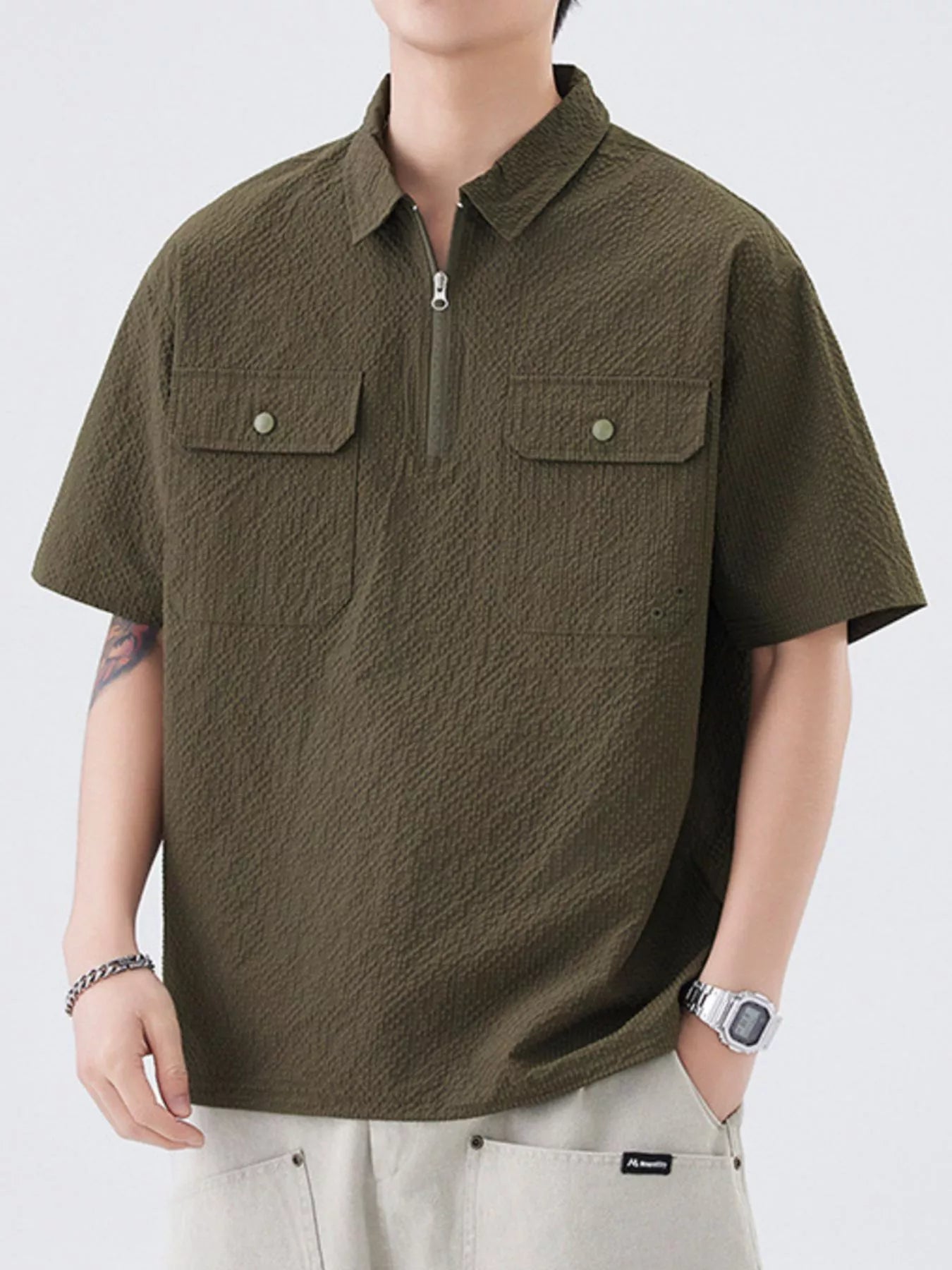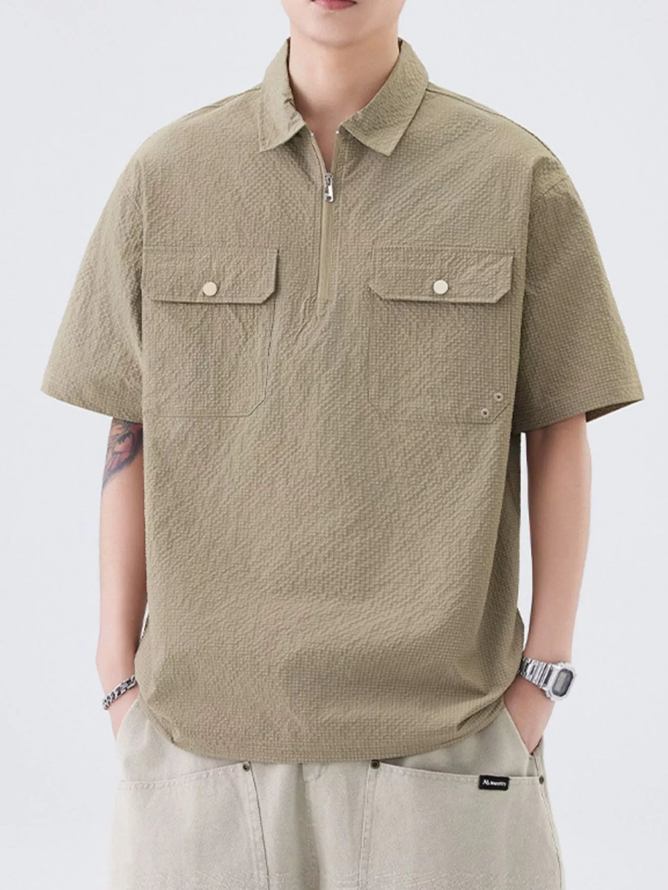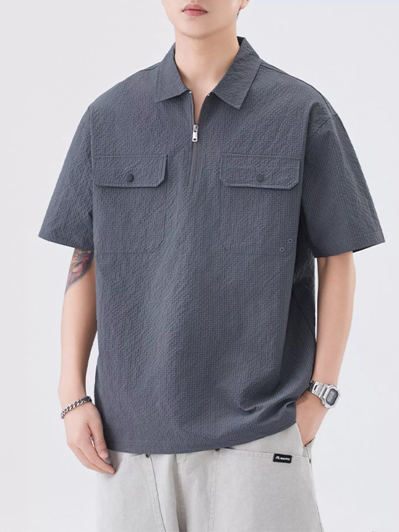 Men's Quarter Zip Half Sleeve Polo
