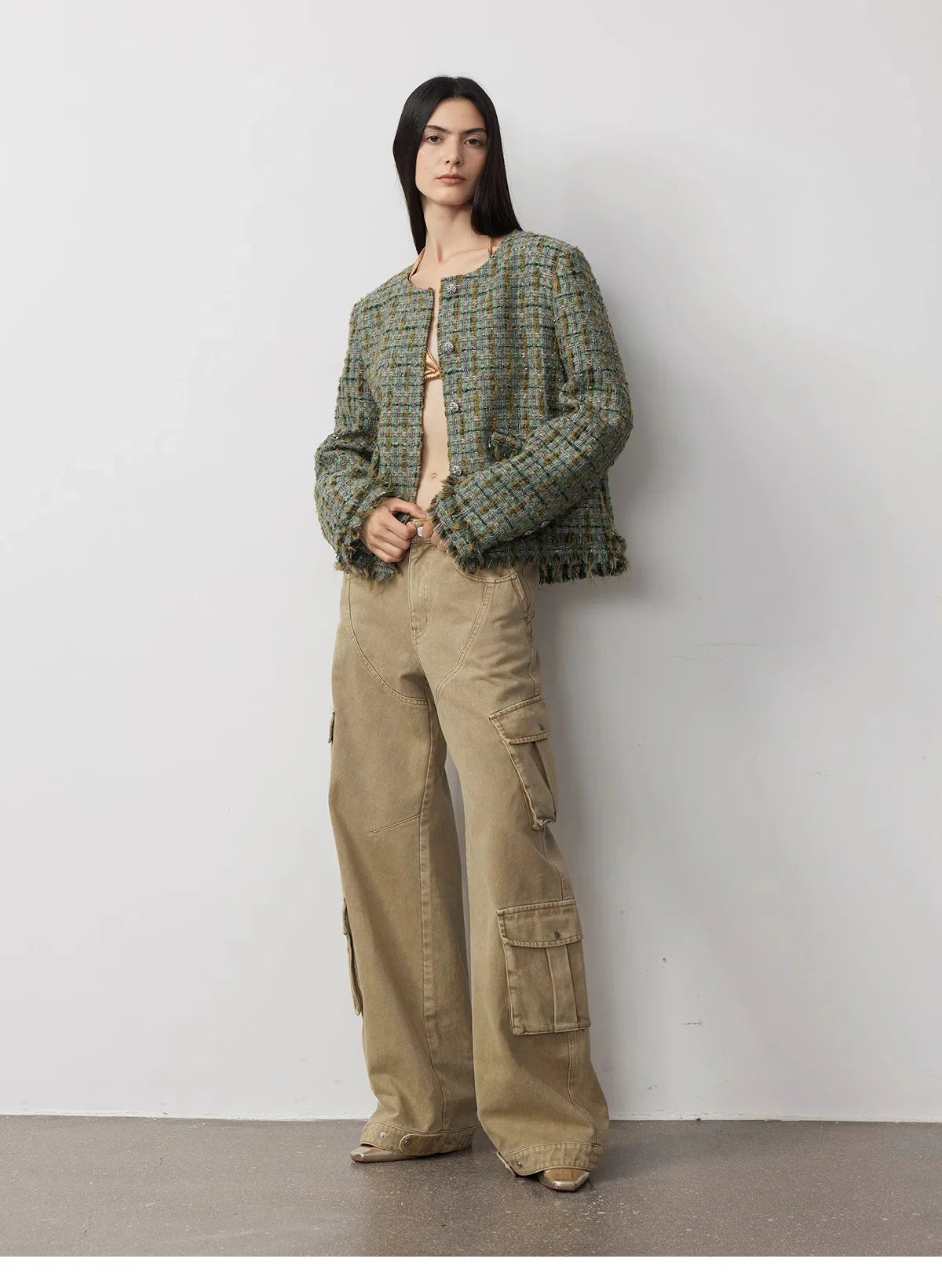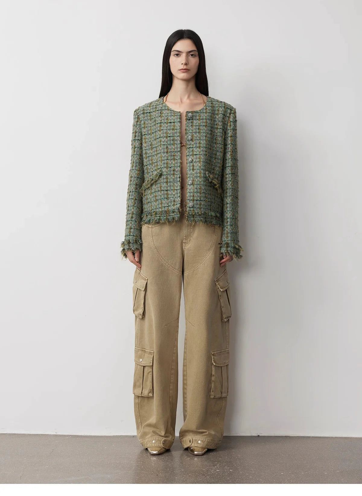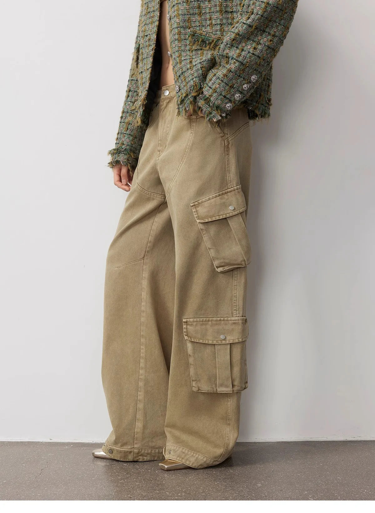 "Nostalgic Wasteland" Heavy Washed Personalized Distressed American Streetwear Large Pocket Cocoon Jeans