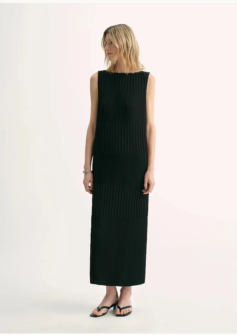 Original Design Handmade Pleated Straight Sleeveless Boat Neck Dress