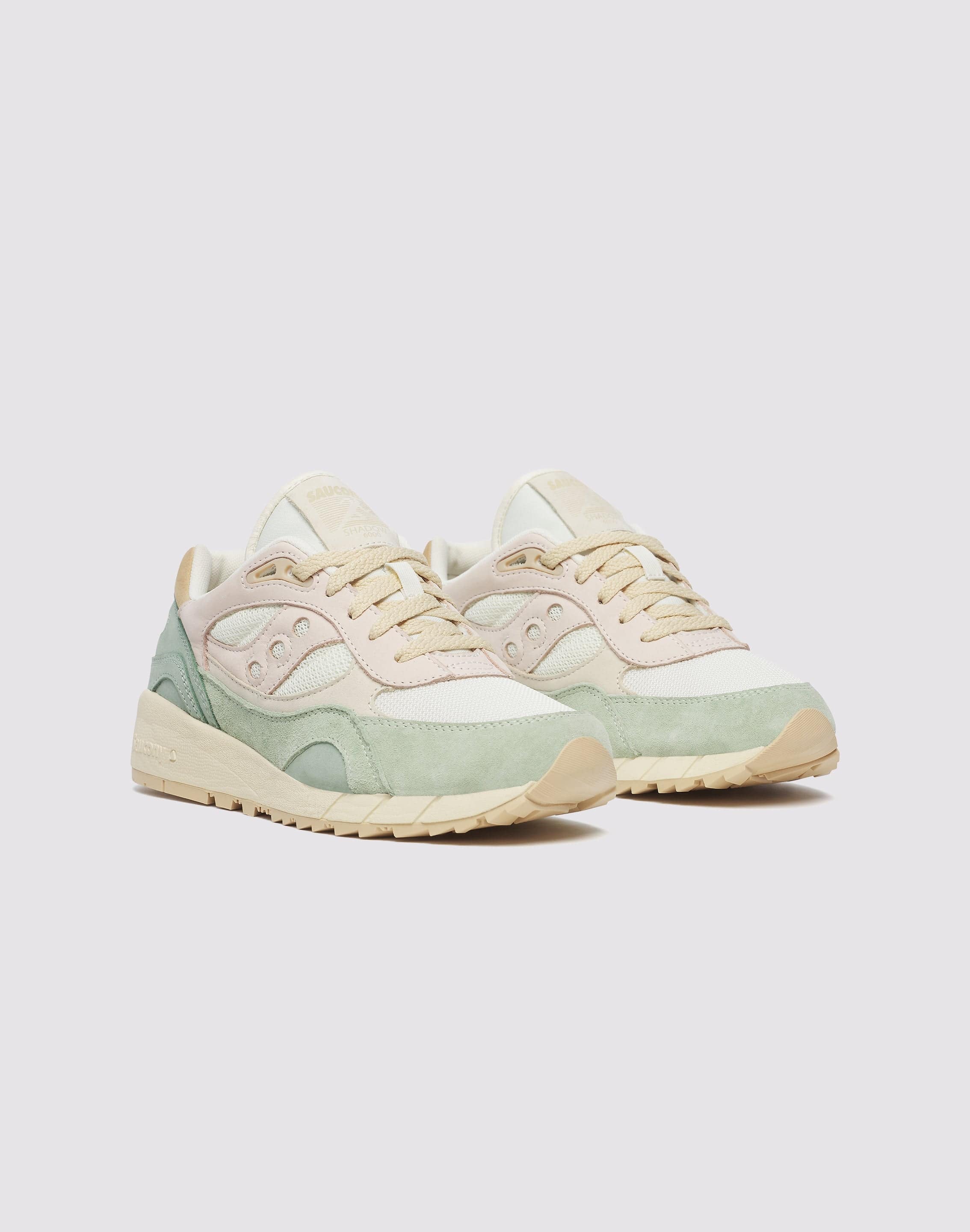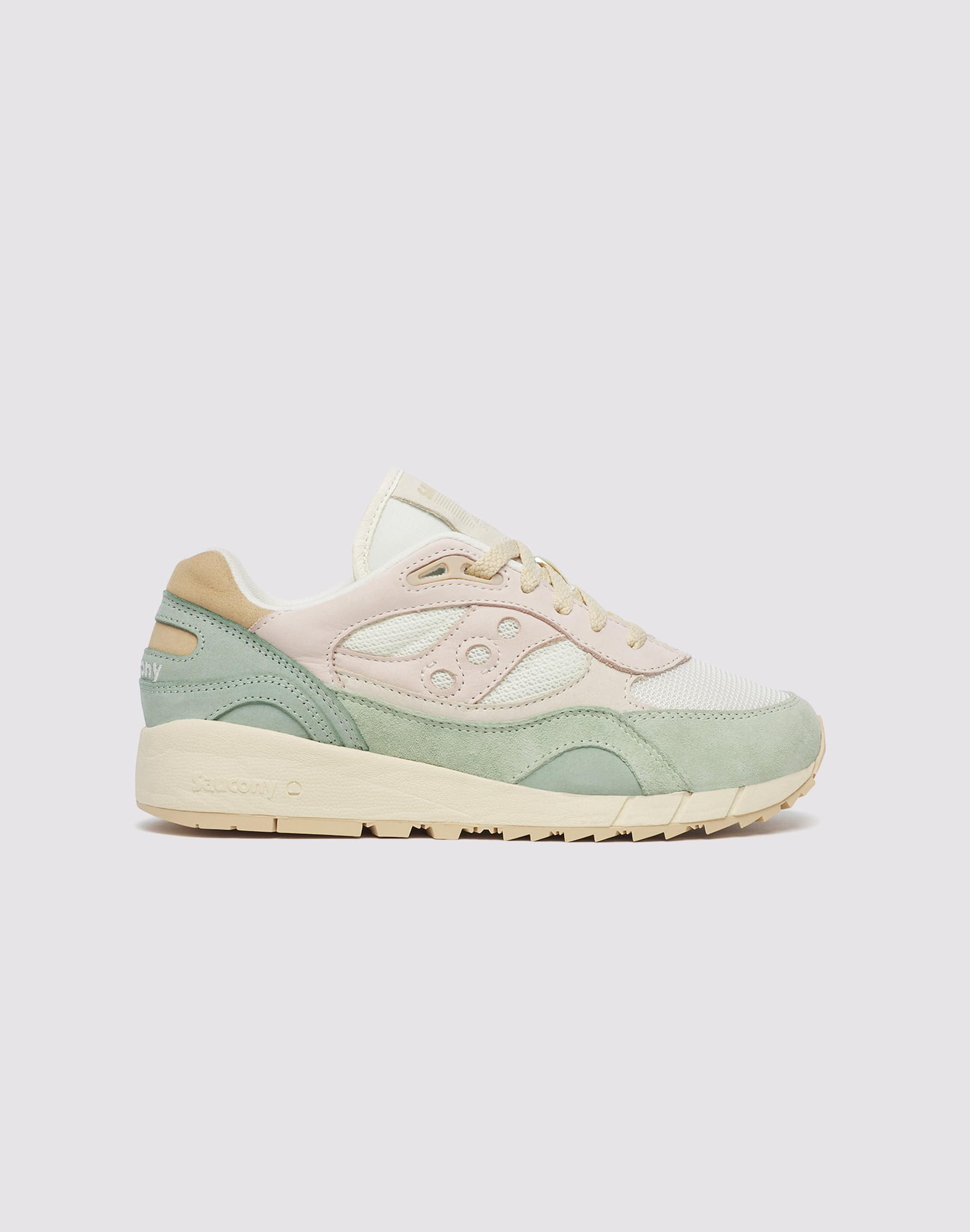 Summoning 1991’s best high-mileage running shoes, these classics support and flex perfectly with the killer cushioning you know and expect from Saucony. Indulge yourself with suede and leather, which give this retro athletic shoe their classic look. Throw on your Saucony Shadow 6000 Women's "Sail/Mint" Shoe and break a sweat in the same balanced running fashion sneakers you’ve rocked since back in the day. Featuring a premium sock liner, an ionic cushioning system, an EVA midsole and triangular lugs, they’re a blast from the past and they’re ready for all the future greatness to come.