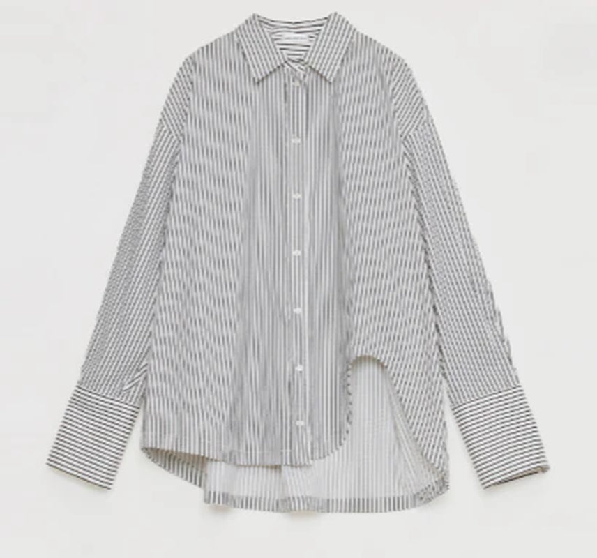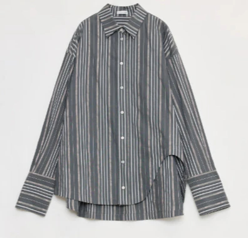 "Striped Fantasy" Casual Asymmetric Slanted Front Two-Wear Striped Long Sleeve Shirt