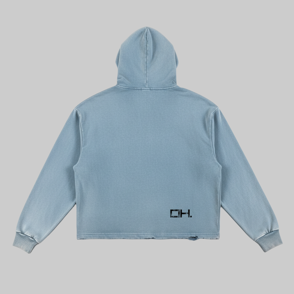 Embrace effortless urban elegance with this substantial hoodie, distinguished by its artfully distressed snow-wash aesthetic that captures an authentically lived-in character. The deliberately frayed hemline and generously proportioned silhouette deliver understated comfort, seamlessly bridging the gap between refined casualness and contemporary streetwear sensibility for discerning wearers of any gender.